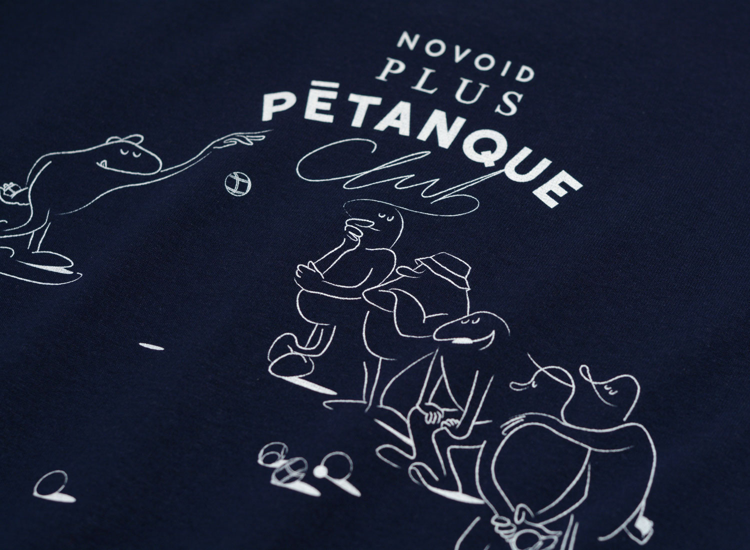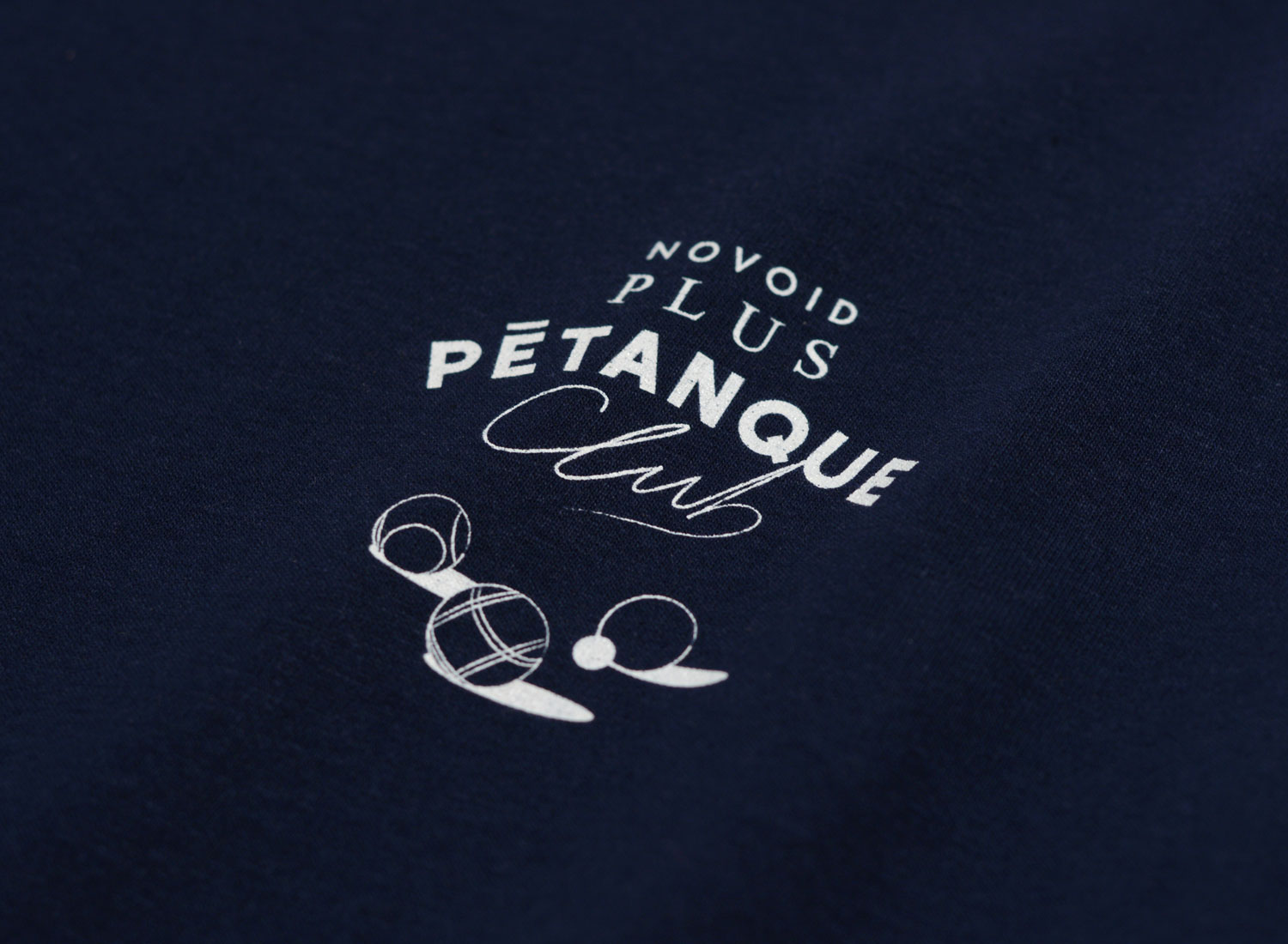 NOVOID PLUS Pétanque Club Tee Navy. Bienvenue au Novoid PLUS Pétanque Club ! Coupe regular. Col rond. Impression à l'encre bio sur la poitrine et au dos. Artwork par notre VINCENT MAUNIER officiel. Quantités limitées. Imprimé dans le sud de la France !