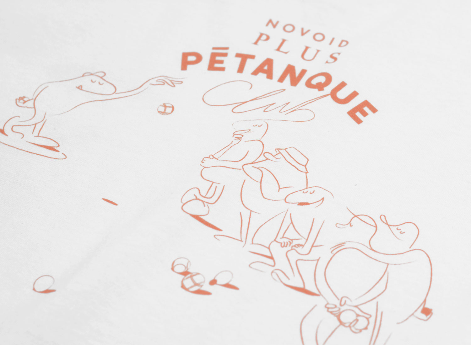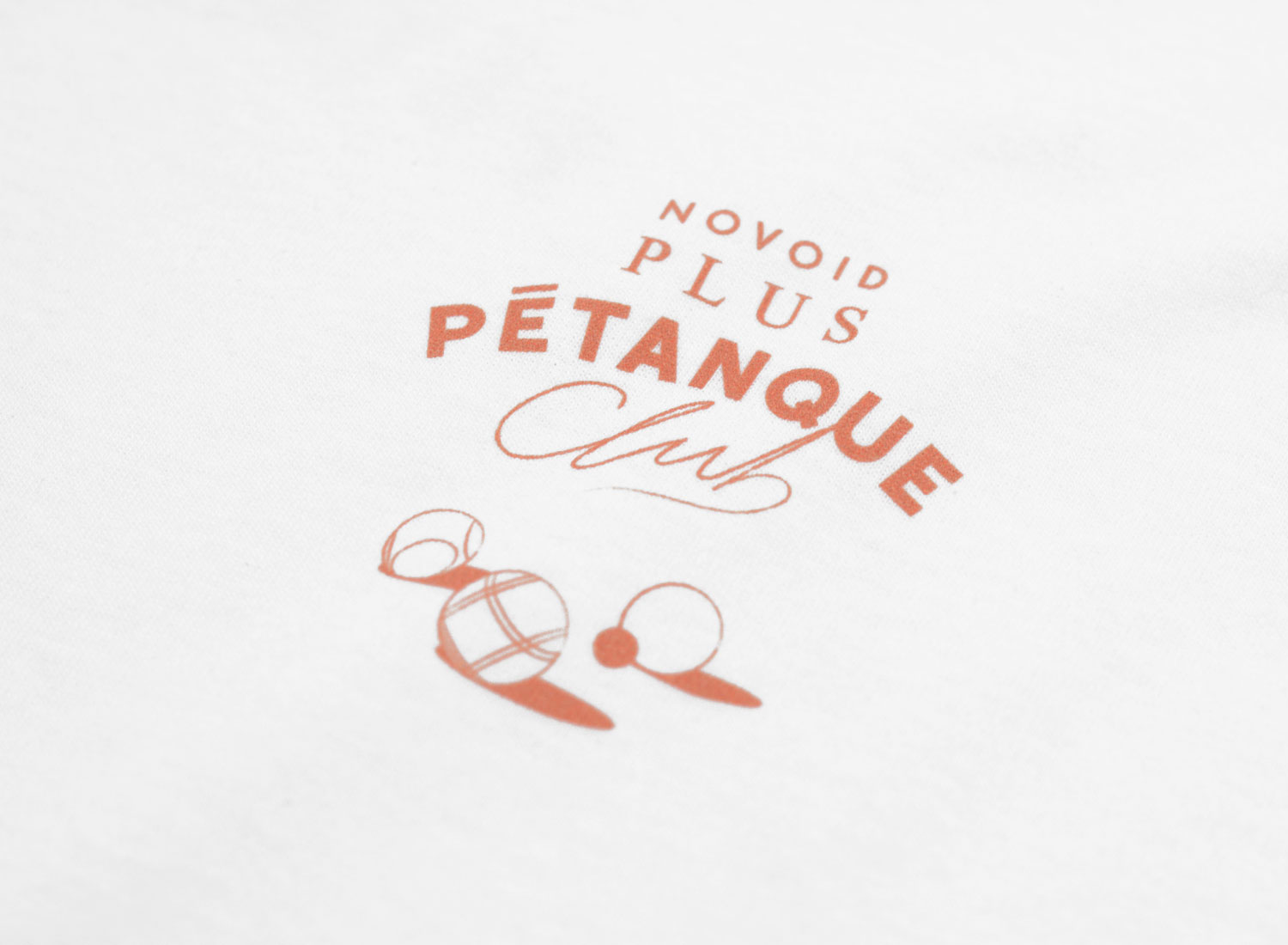 NOVOID PLUS Pétanque Club Tee White Orange. Benivenue au Novoid PLUS Pétanque Club ! Coupe regular. Col rond. Impression à l'encre bio sur la poitrine et au dos. Artwork par notre VINCENT MAUNIER officiel. Quantités limitées. Imprimé dans le sud de la France !