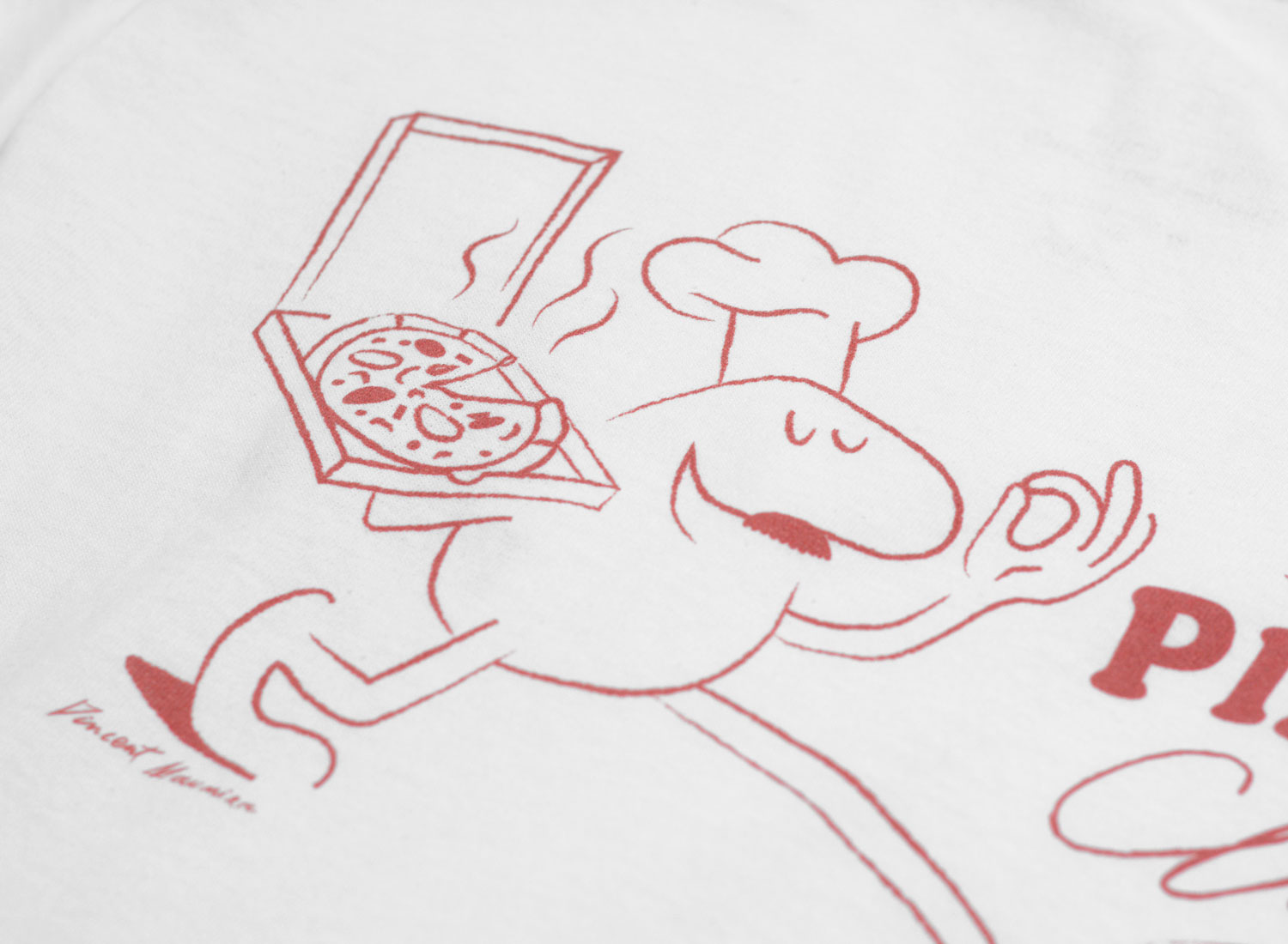 NOVOID PLUS Pizza Club Tee White Red. Benivenue au Novoid PLUS Pizza Club ! Coupe regular. Col rond. Impression à l'encre bio sur la poitrine et au dos. Artwork par notre VINCENT MAUNIER officiel. Quantités limitées. Imprimé dans le sud de la France !