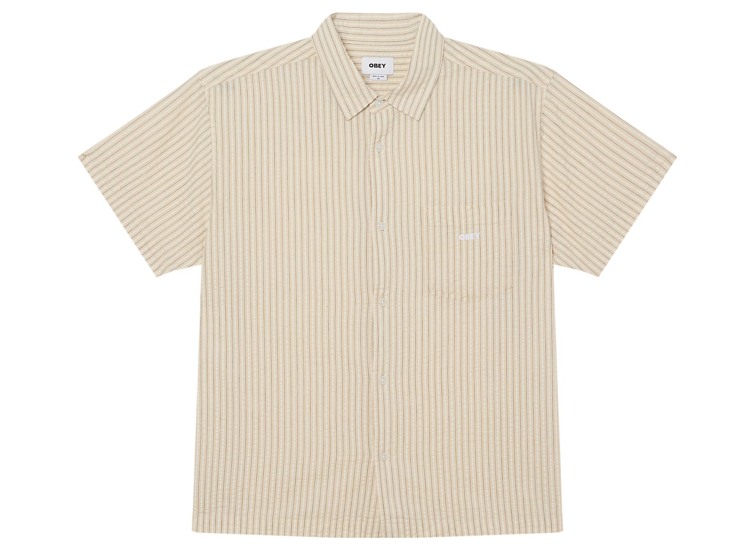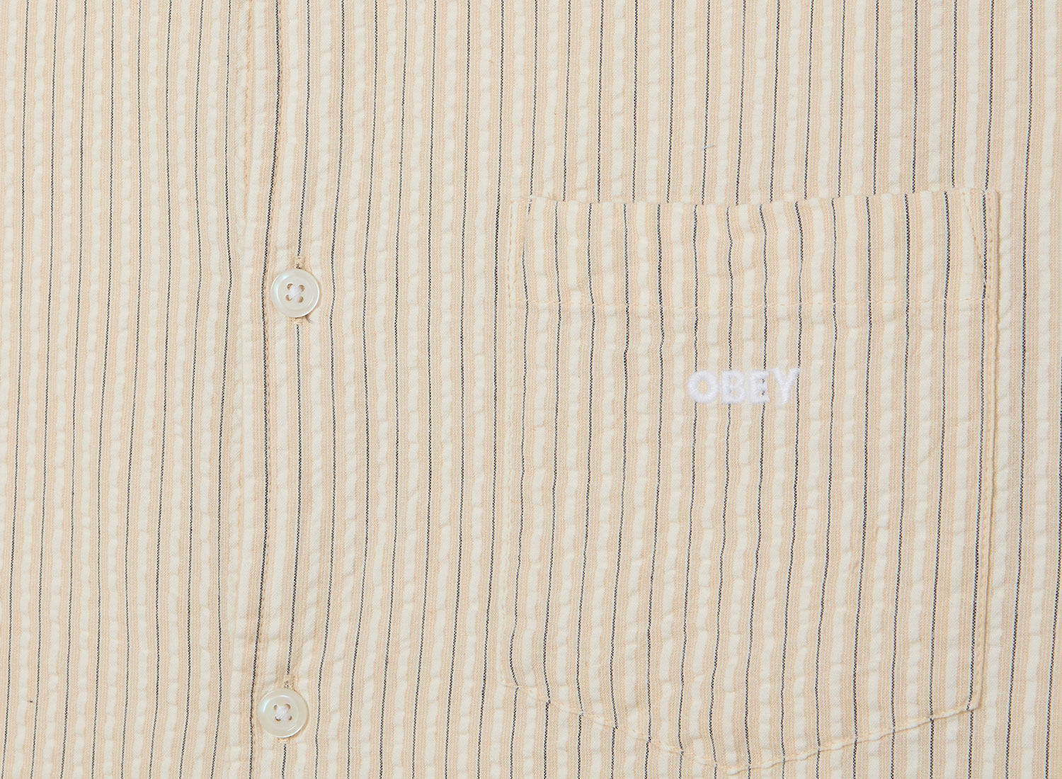 Chemise confectionnée dans un seersucker coton 100% à rayures pour un toucher léger et aérien. Coupe relaxed pour une silhouette décontractée. Fermeture boutonnée sur toute la longueur et ourlet droit pour une finition épurée. Poche poitrine plaquée. Broderie OBEY sur la poitrine pour une signature sobre et authentique. Produit issu du commerce équitable pour une fabrication responsable et engagée.