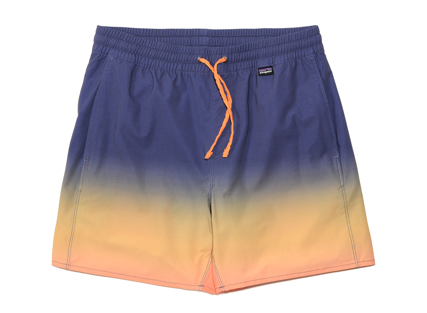 PATAGONIA Hydropeak Volley Shorts Cosmic Gradients. Maillot coupe regular confectionné en tissu à séchage rapide 87% Polyester recyclé / 13% Élasthanne. Cordon de serrage à la taille. Poches passepoilées sur les côtés. Poche à rabat velcros au dos.
