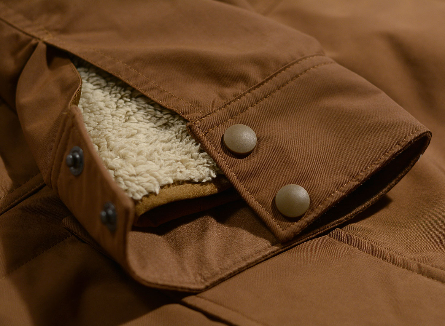 Zip sur toute la longueur et col doublé en polaire ; empiècement en taffetas avec matelassage en losanges ; liseré élastique au col, aux poignets et au bas du vêtement. Poches à ouverture latérale doublées en polaire, insérées dans les coutures ; poche poitrine intérieure zippée. Matière extérieure : 100% nylon recyclé, 149 g/m², avec enduit en polyuréthane et apprêt déperlant durable (DWR). Doublure de la veste extérieure et de la veste amovible : taffetas 100% polyester recyclé, 75 g/m², avec apprêt déperlant durable (DWR) sans PFC (sans composés chimiques perfluorés). Matière extérieure de la veste amovible : polaire épaisse 100% polyester recyclé, 268 g/m². Confection Fair Trade Certified™.