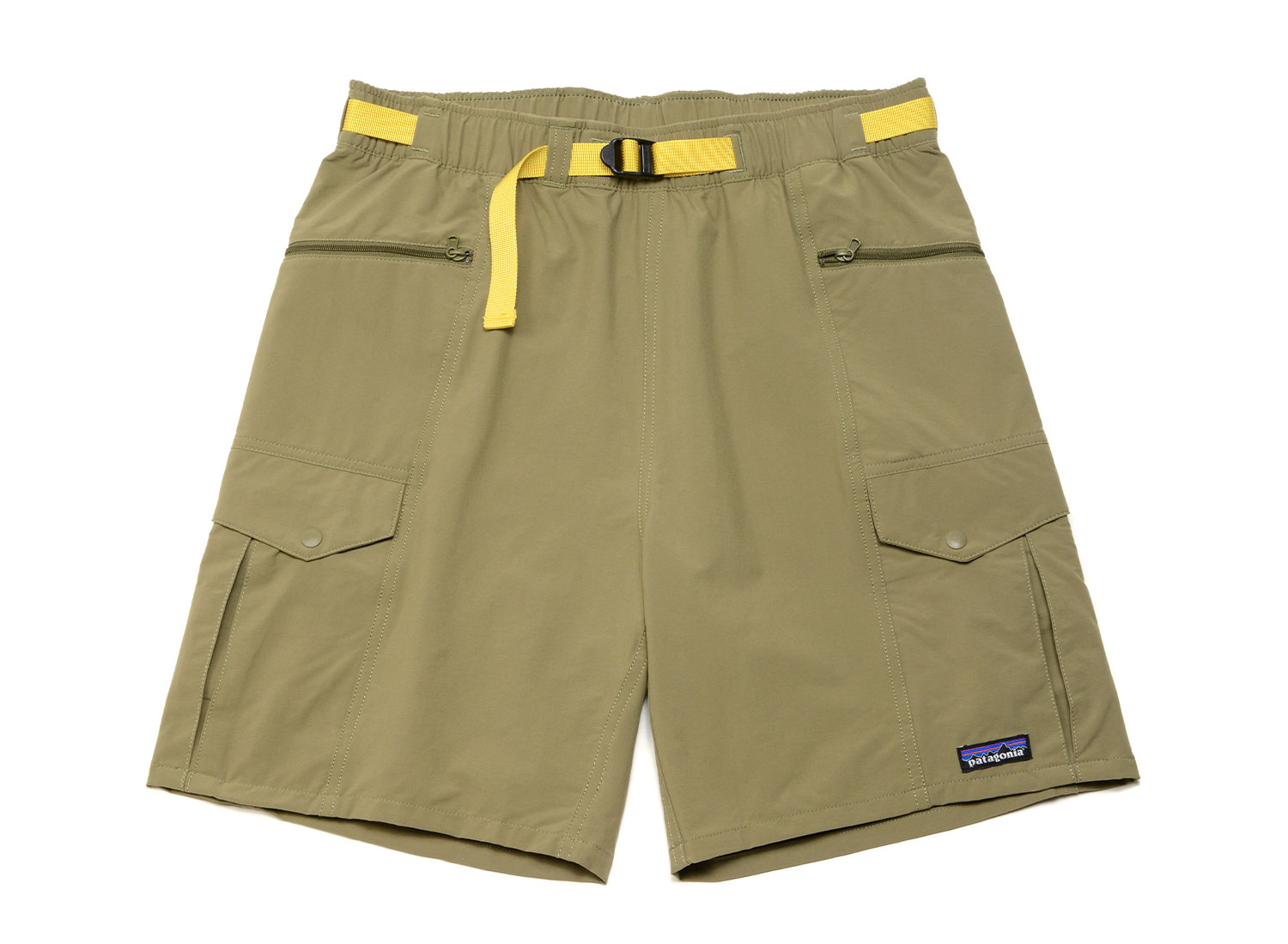 PATAGONIA Outdoor Everyday Shorts Sage Khaki. Short robuste et fonctionnel, aussi à l’aise dans l’eau qu’en dehors, fabriqué dans une matière à séchage rapide 95% nylon (recyclé à 65%) et 5% élasthanne traitée avec un apprêt déperlant durable (DWR). Taille élastique et ceinture avec boucle intégrée. Poches avant zippées et drainantes. Deux poches cargo drainantes avec rabat à bouton-pression. Poche arrière zippée, côté droit. Coutures rabattues et matière non doublée pour plus de confort sur la peau.