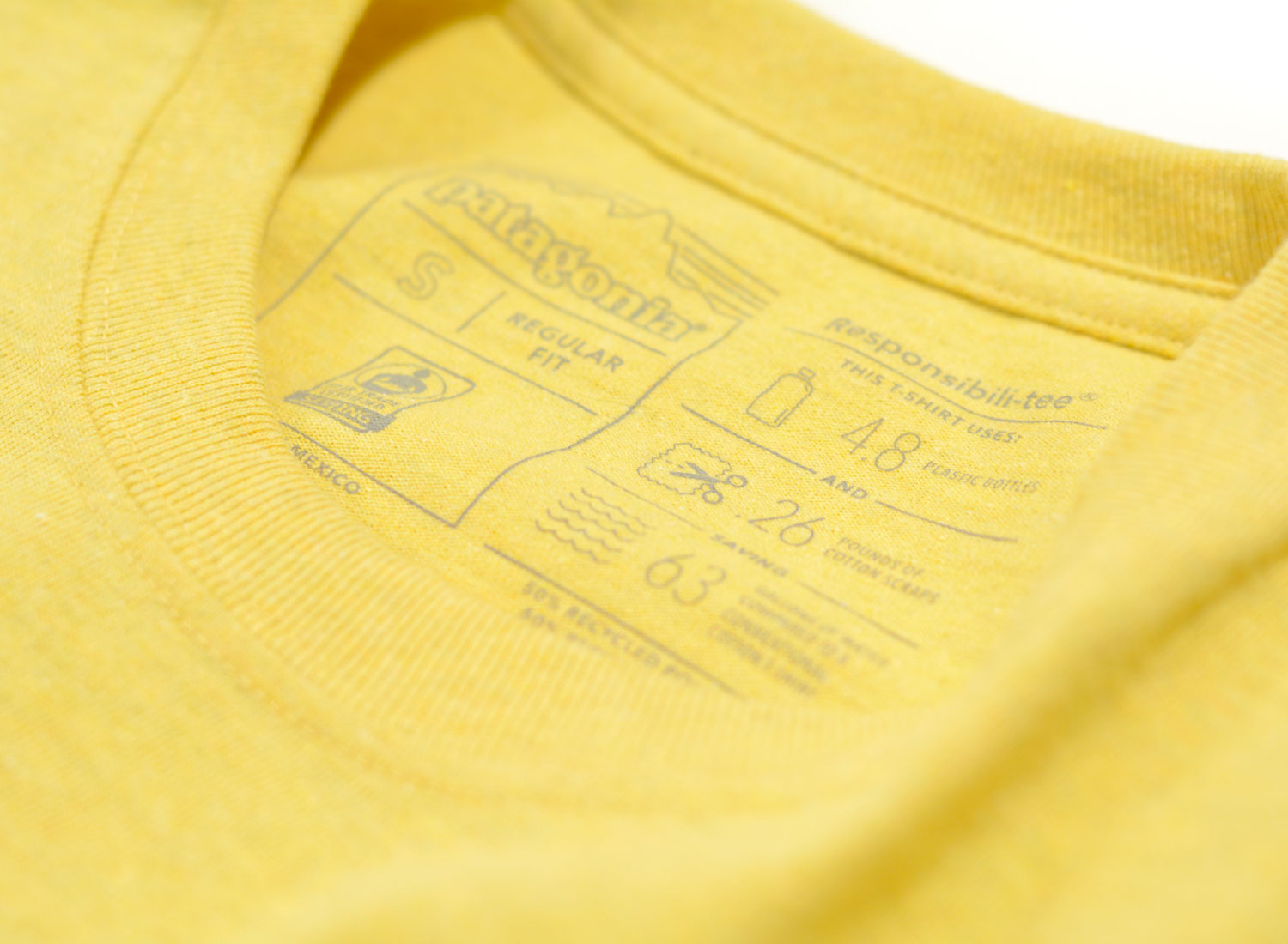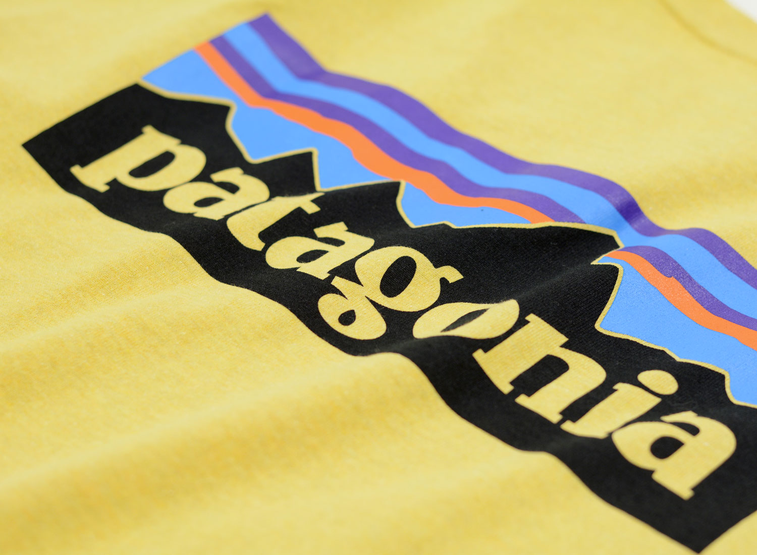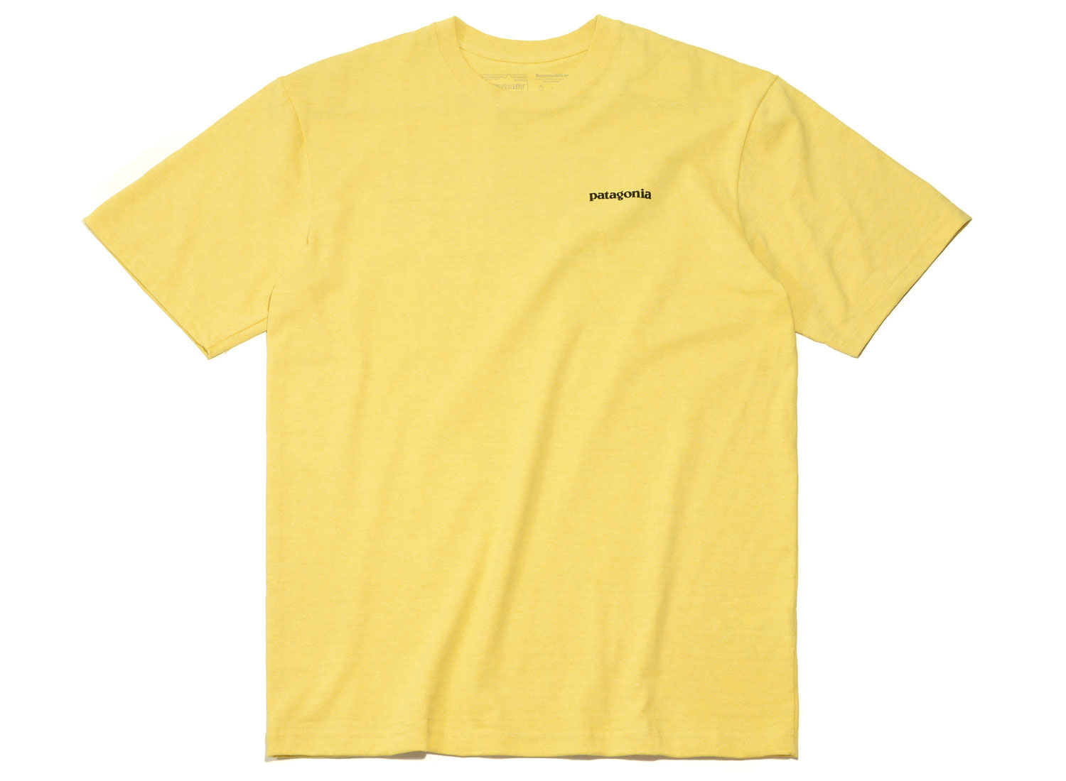 PATAGONIA P6 Logo Responsibili-Tee Surfboard Yellow. T-shirt coupe regular confectionné en jersey 50% coton recyclé et 50% polyester recyclé post-consommation. outures étanchées aux épaules pour un confort accru et une meilleure tenue Matières 100% recyclées Logo PATAGONIA original sérigraphié avec des encres sans PVC, ni phtalates.