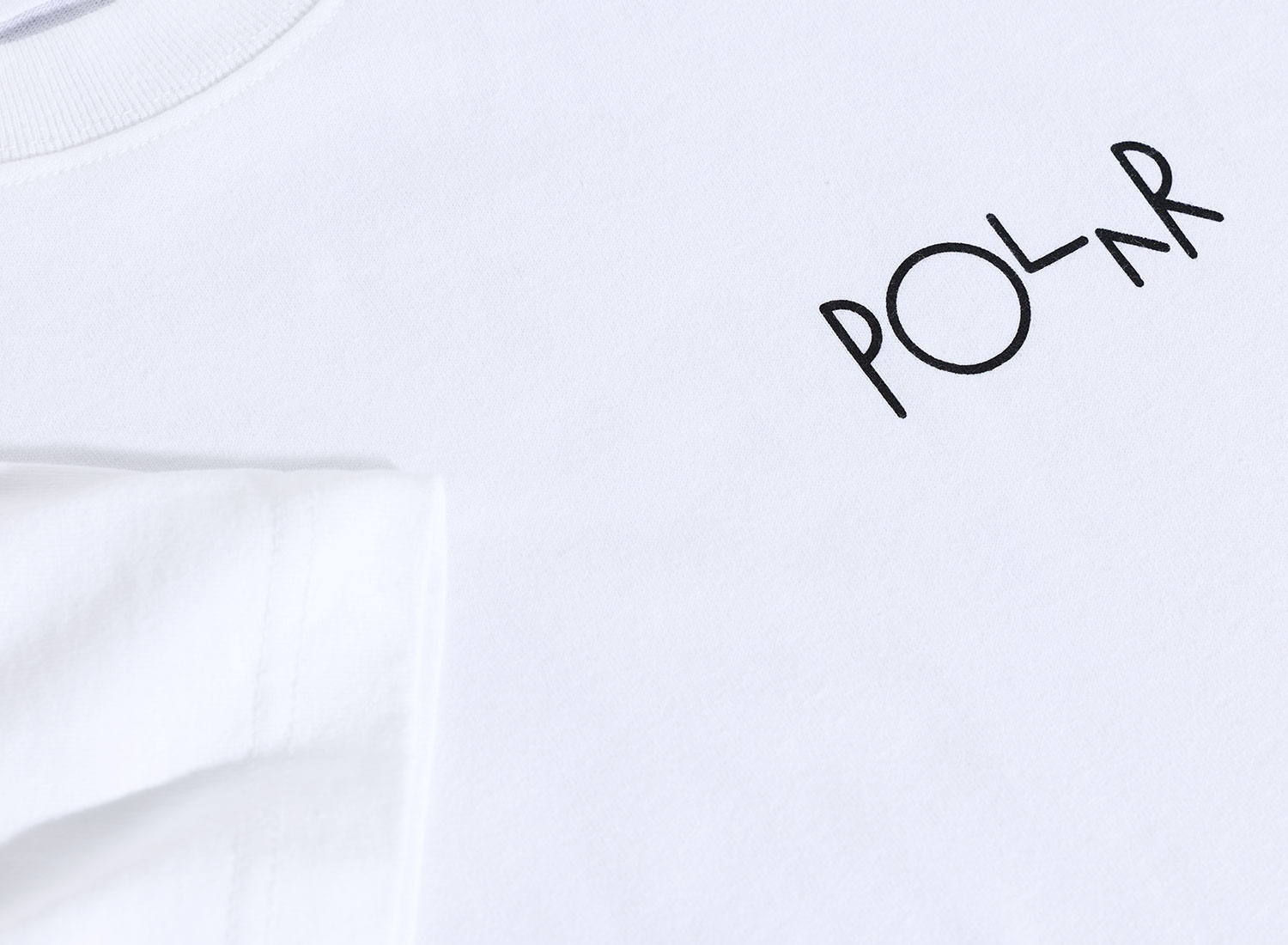 POLAR SKATE CO Fill Logo Tee Happy Sad White. T-shirt coupe ample 100% coton. Inscription POLAR sur la poitrine et logo au dos.