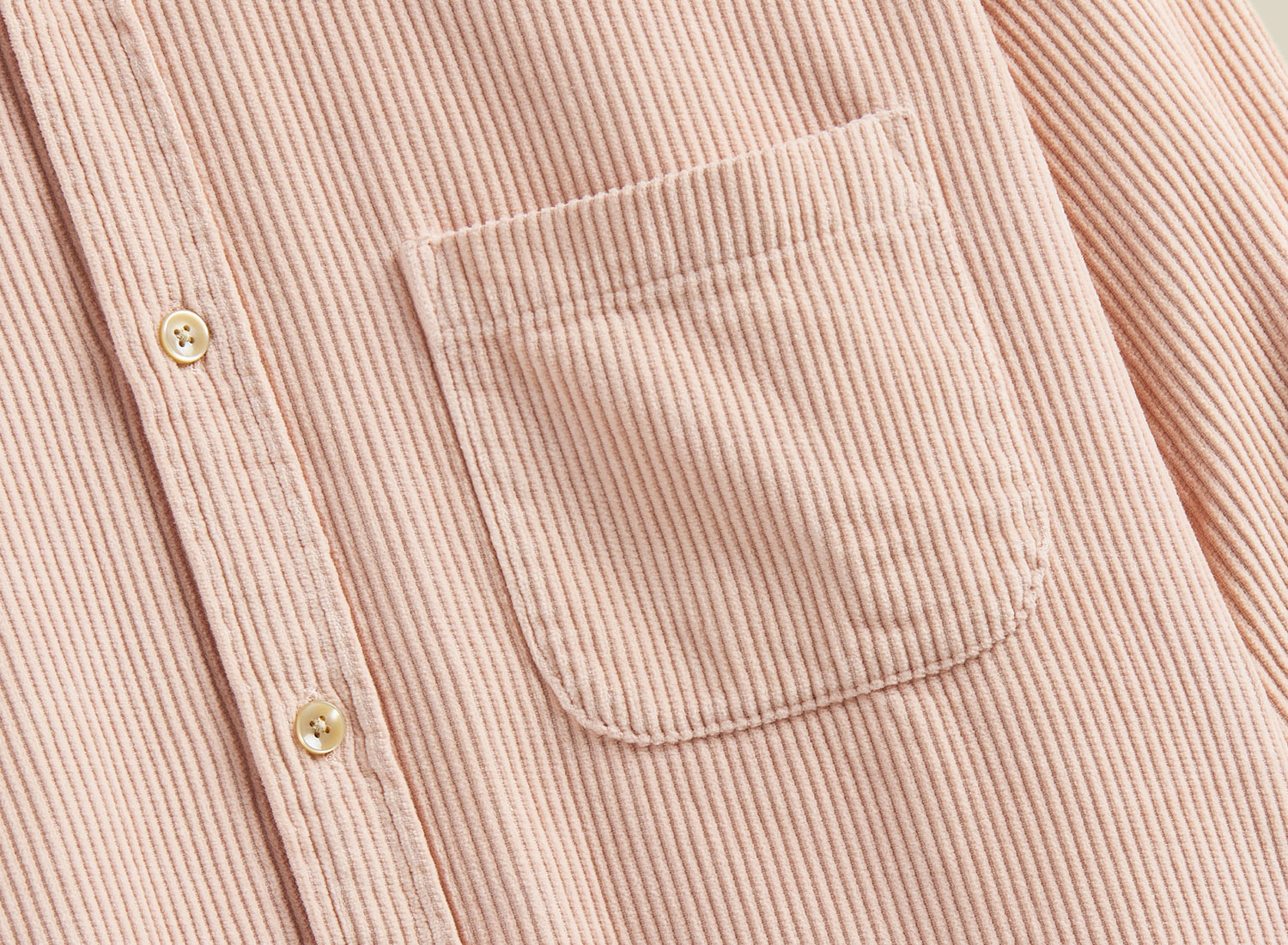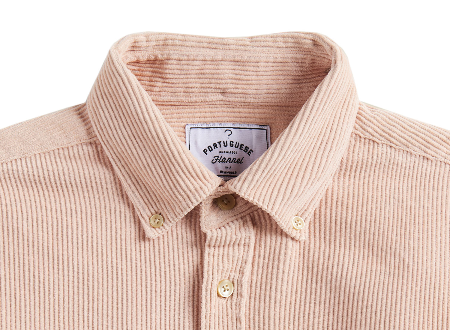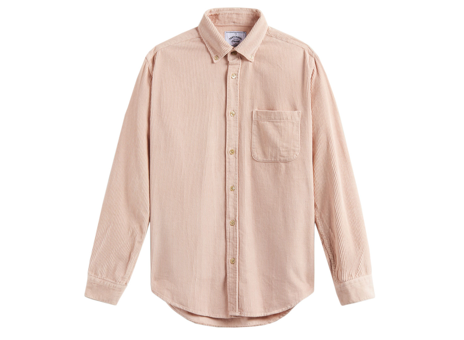 PORTUGUESE FLANNEL Lobo Shirt Old Rose. Chemise coupe droite confectionnée dans un velours côtelé 100% coton. Une poche poitrine. Col et poignets boutonnés. Découpe arrondie sur le bas.