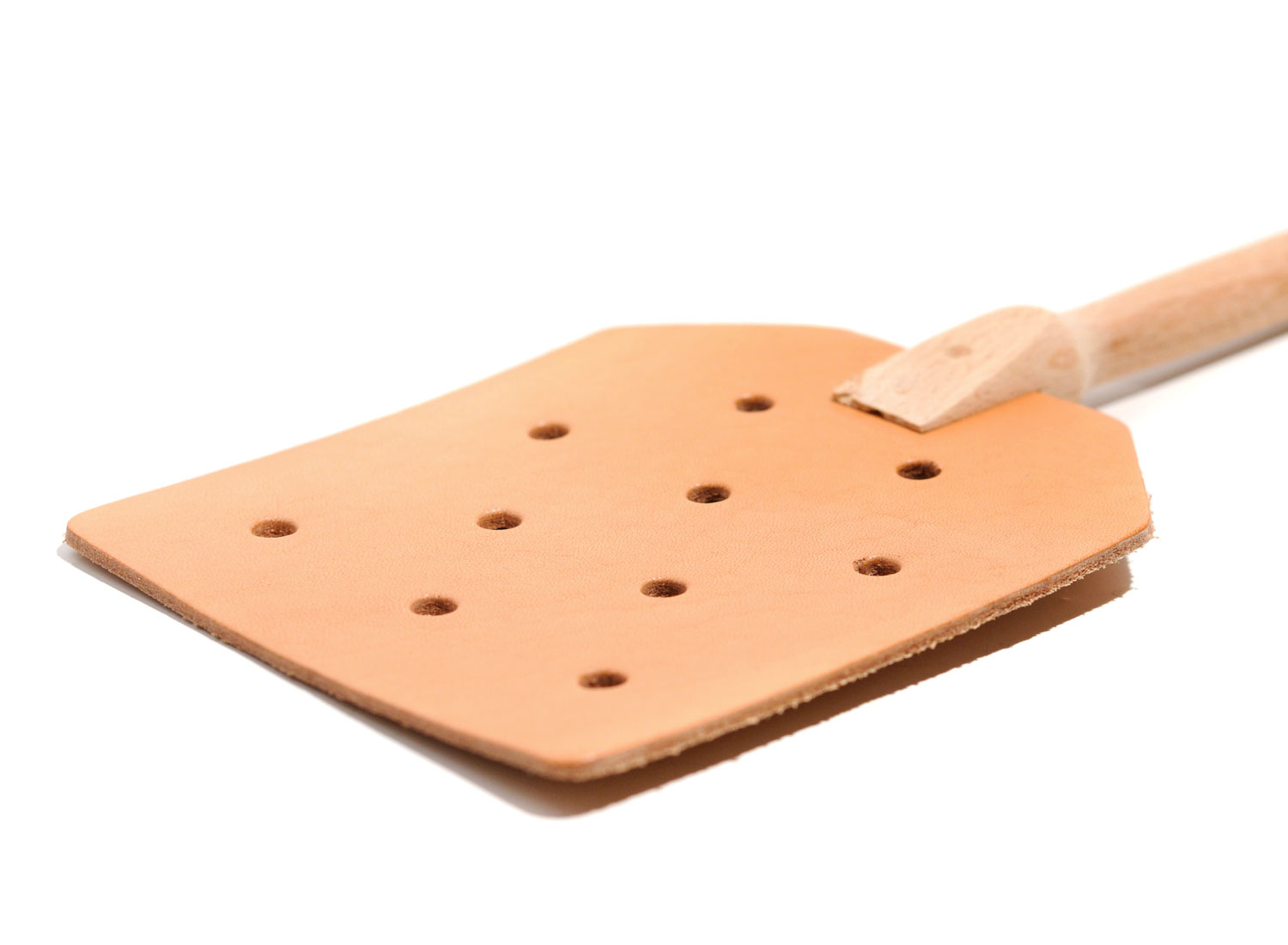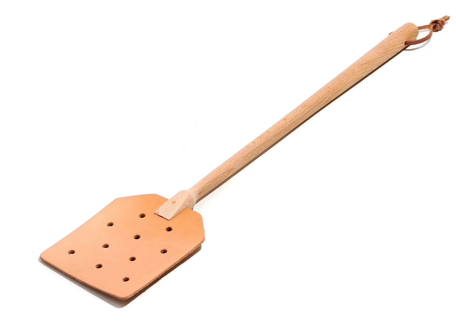 REDECKER Tapette a Mouches Cuir. Tapette convenant parfaitement contre les mouches mais également contre les guêpes. Longue de 51cm. Manche en bois de hêtre huilé.