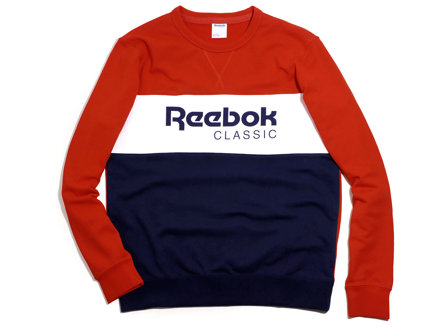 REEBOK Archives Stripe Crew Sweatshirt Red AY0823. Sweat col rond retro 100% coton. Coupe droite. Impression et empiècement sur l'avant. Bords-côtes au col, aux poignets et sur le bas.