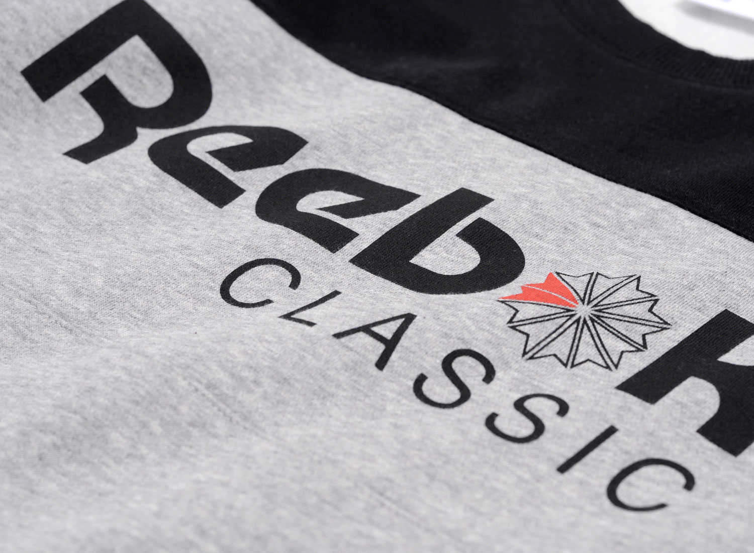 REEBOK Iconic Crewneck Grey. Sweatshirt col rond en molleton non gratté 80% coton / 20% polyester. Coupe regular. Empiècement et impression sur l'avant. Bords-côtes au col, aux poignets et sur le bas.