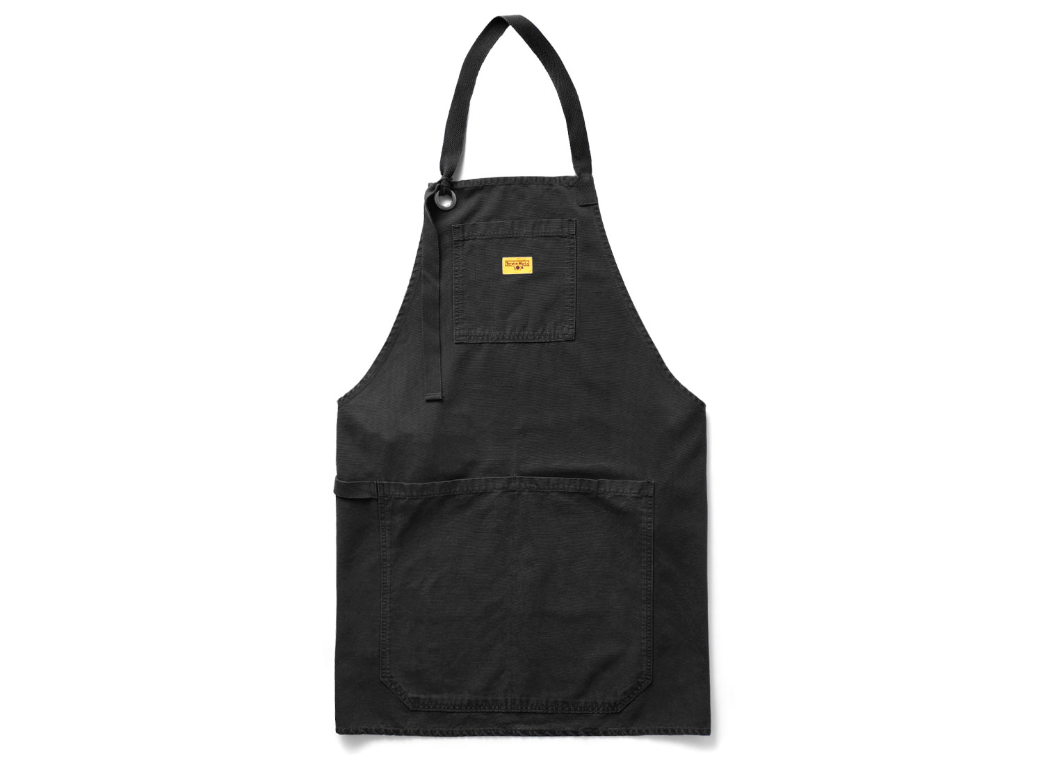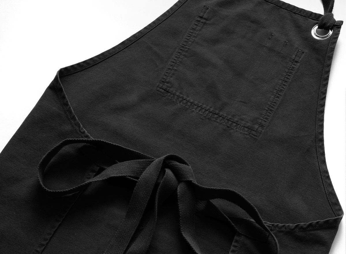 Service Works Canvas Apron Black. Tablier confectionné dans une belle toile de coton organique de 11oz. Poche poitrine avec étiquette tissée. Grande poche à deux compartiments. Boucle avec lien.