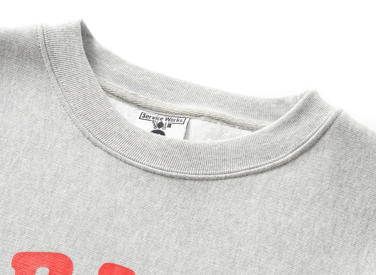 Service Works Organic Chefswear Crewneck Grey. Sweatshirt col rond confectionné dans un molleton 100% coton organique. Coupe regular. Impression sur la poitrine. Bords-côtes au col, aux poignets et sur le bas.
