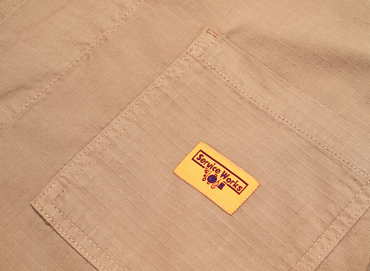 Service Works Ripstop Coverall Jacket Mink. Veste de travail fabriquée dans une belle toile ripstop souple et résistante. Coupe classique légèrement ajustée. Une poche poitrine avec étiquette Service Works brodée. Deux poche sur le bas. Fermeture boutonnée.