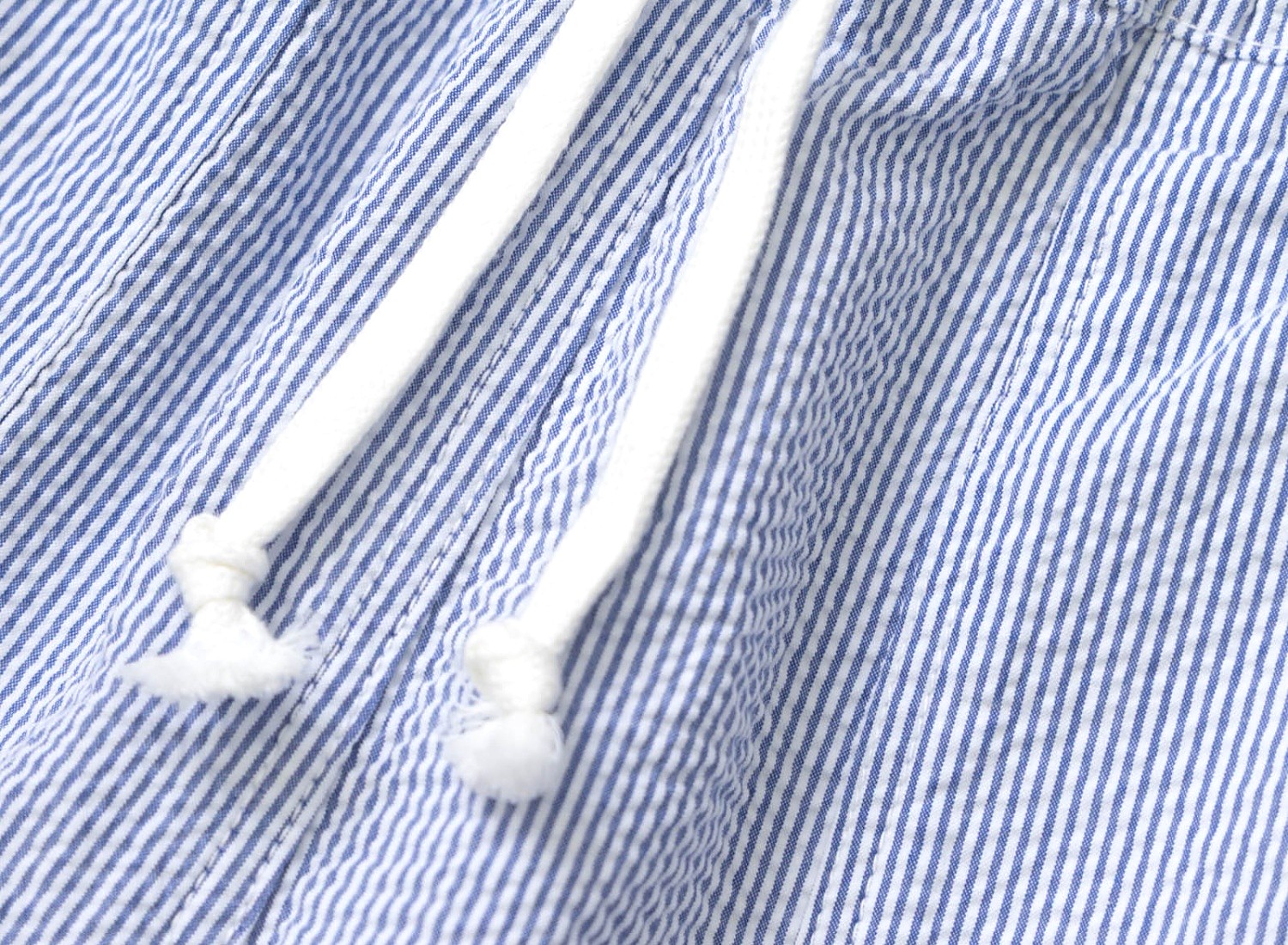 Rayures navy tissées dans le seersucker pour un héritage visuel du vêtement de cuisine classique.