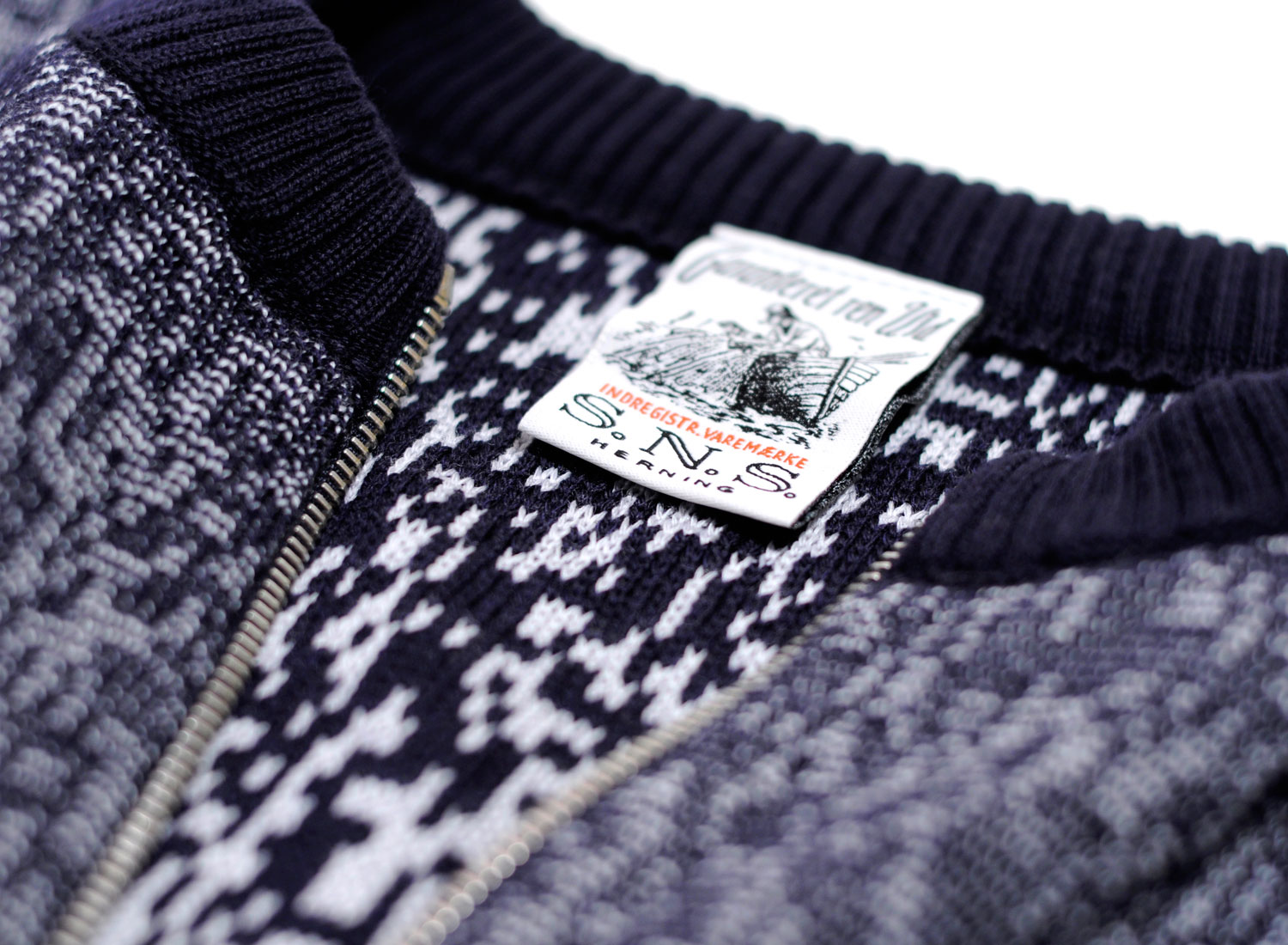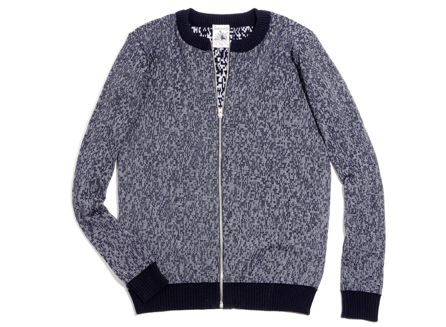 SNS HERNING Neuron Jacket Blue Brain. Très beau gilet zippé en maille épaisse 100% laine vierge. Coupe droite. Bords-côtes contrastés au col, aux poignets et sur le bas. Maille tricotée au Danemark.