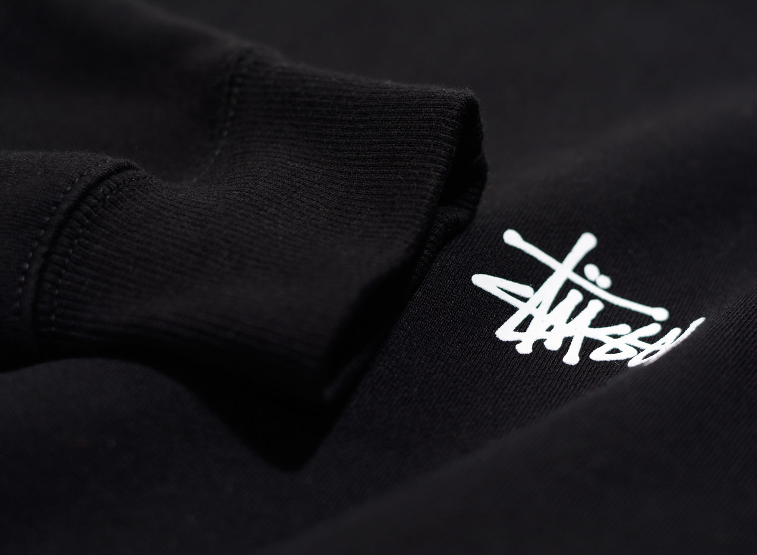 STUSSY Basic Stussy Crew Black. Sweatshirt col confectionné en molleton doux et confortable. 80% coton / 20% Polyester. Coupe regular. Impression sur la poitrine et au dos. Bords-côtes au col, aux poignets et sur le bas.