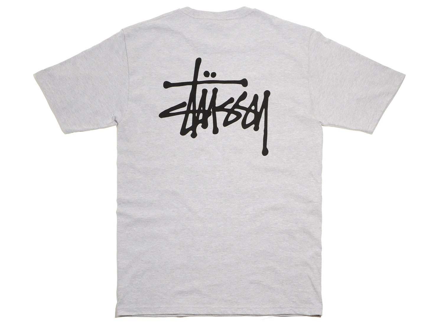 STUSSY Basic Stussy Tee Grey. T-shirt col rond en jersey de coton. Coupe droite. Impression sur la poitrine et au dos.