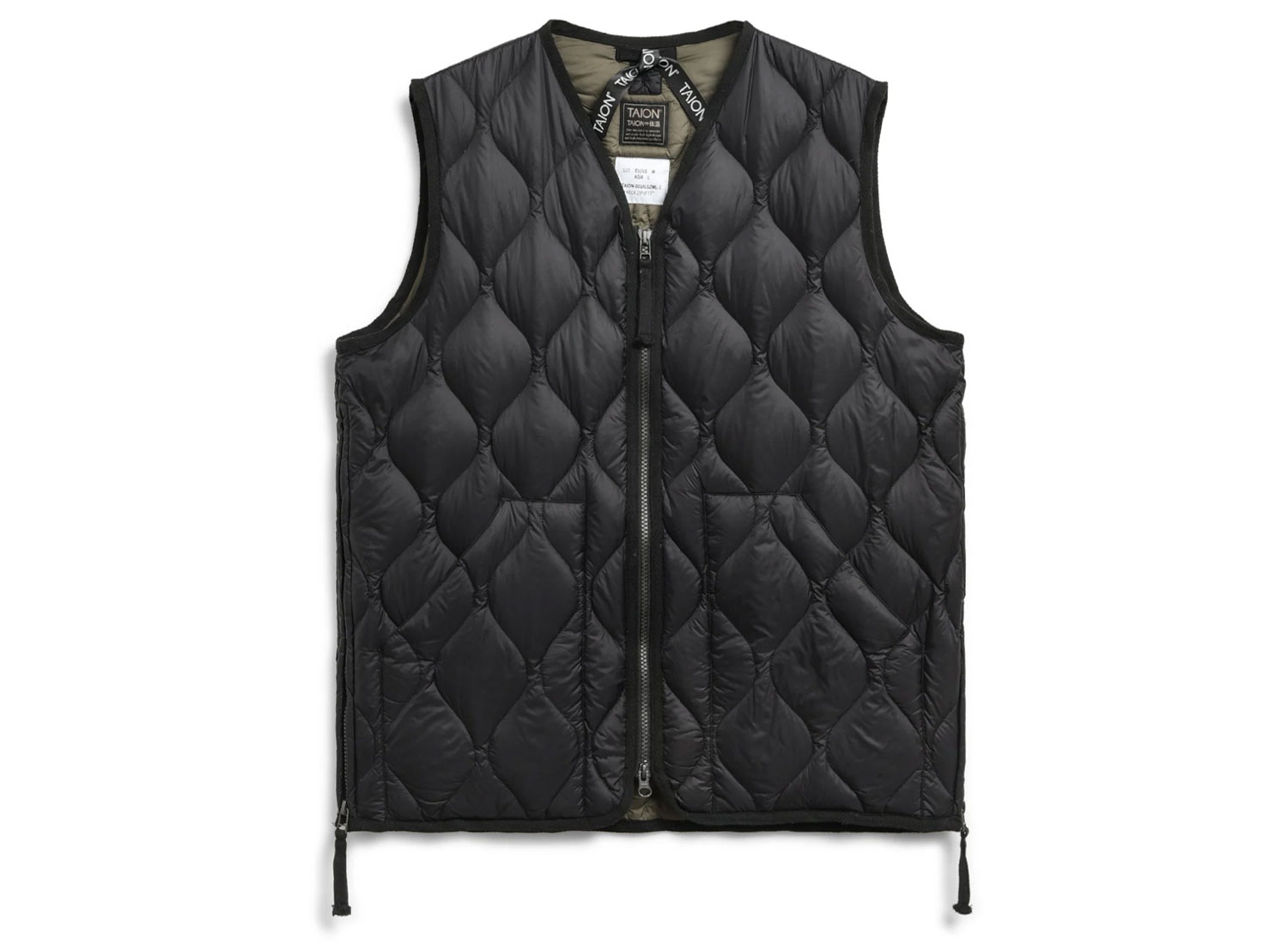 TAION MILITARY V NECK W-ZIP DOWN NYLON VEST BLACK29016Taion 001ALSZ Military V Neck W-Zip Down Nylon Vest Black