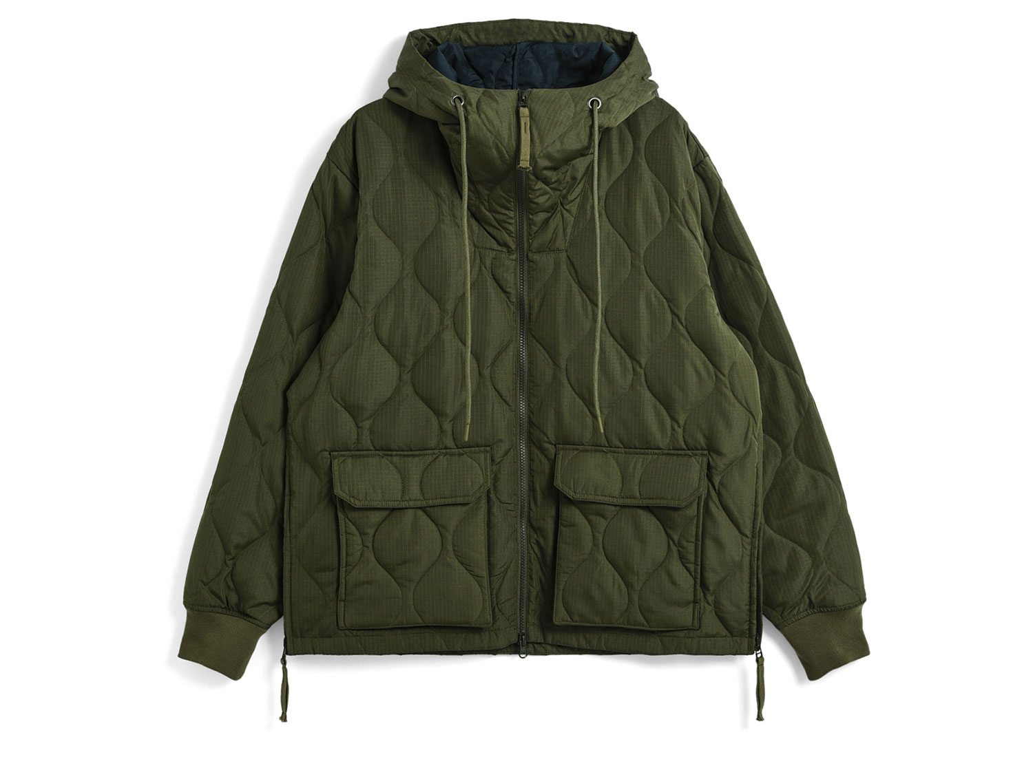 Tissu extérieur Ripstop matelassé, résistant et léger.