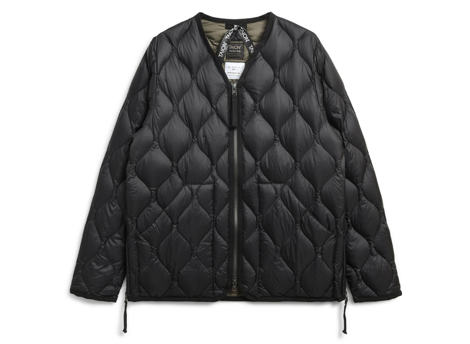 TAION Military W-Zip V-Neck Down Jacket Black. Doudoune matelassée d'inspiration militaire en ripstop 100% Nylon. Rembourrage Duvet d'oie. Compressible. Finitions chevron. Doublure contrastée Fermeture zippée. Zips sur les côtés. Deux poches sur le bas.
