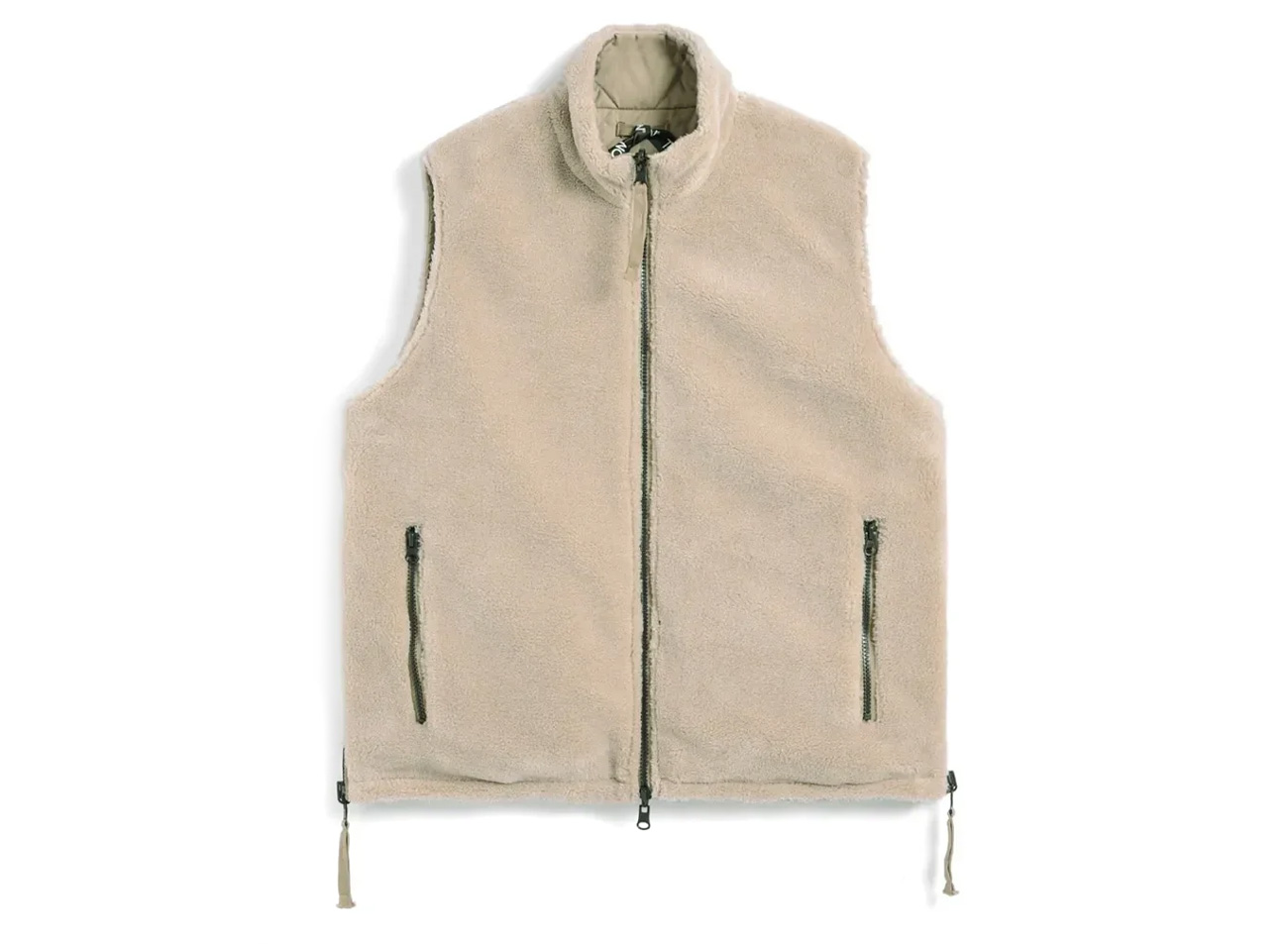 Veste sans manches réversible, avec un côté duvet et un intérieur en polaire sherpa très douce.
