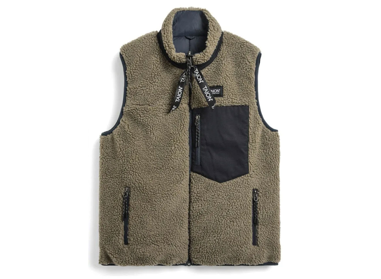Veste sans manches réversible avec une face en nylon déperlant et un intérieur en polaire sherpa très douce.