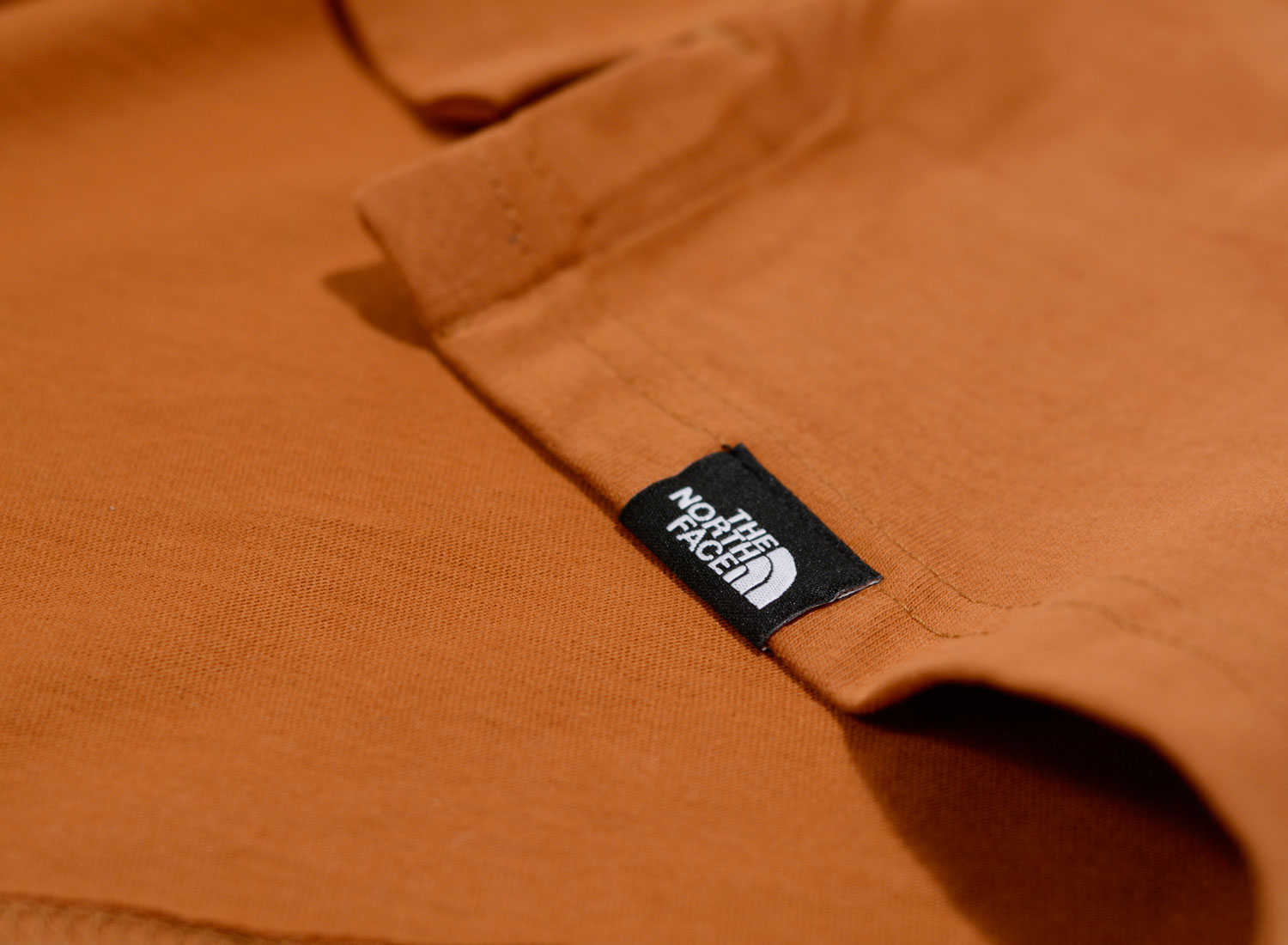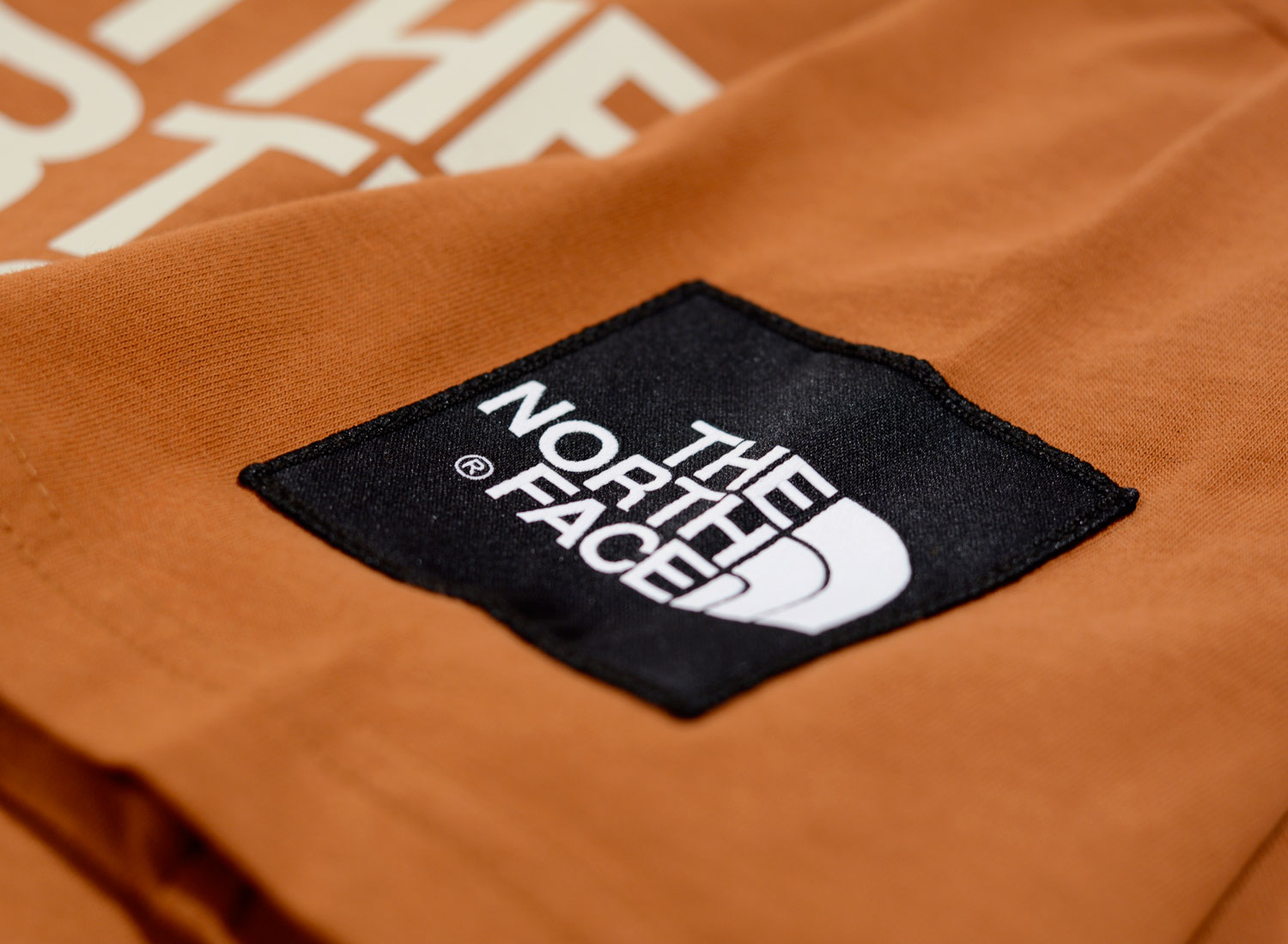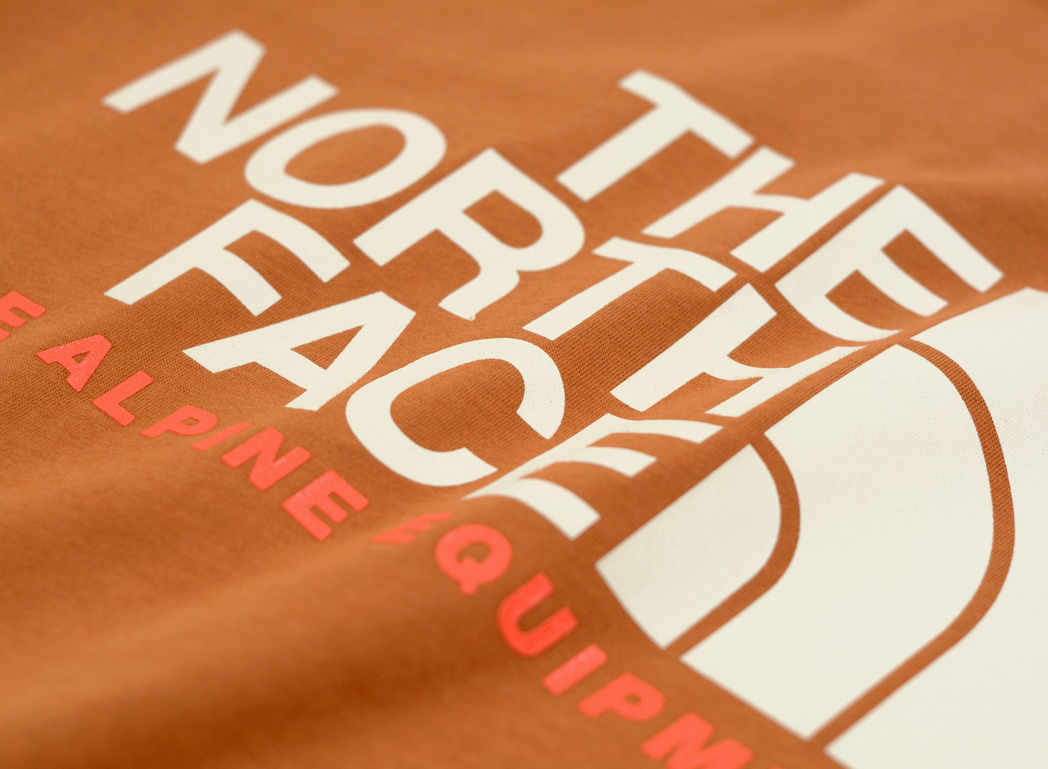 THE NORTH FACE Fine Alpine Tee Caramel Cafe. T-shirt col rond confectionné en jersey de coton très doux. coupe droite. Impression sur l'avant. Patch noir sur la manche.