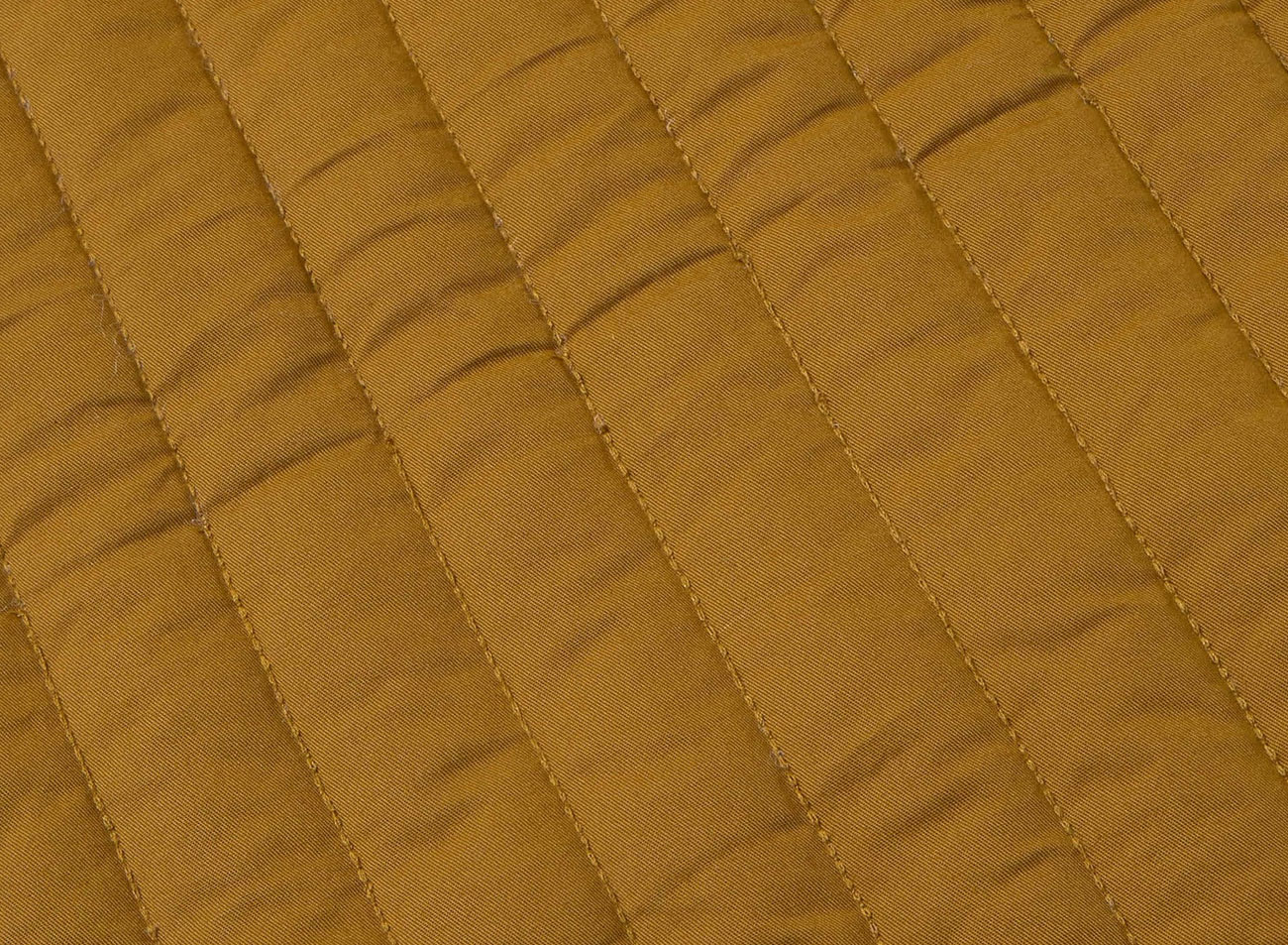 THINKING MU Jon Vest Light Oak. Gilet matelassé sans manches en coton bio. Coupe droite et légère, idéal pour superposer. Détail de petites alvéoles matelassées pour une texture subtile. Fermeture zippée discrète, poches latérales pratiques.
