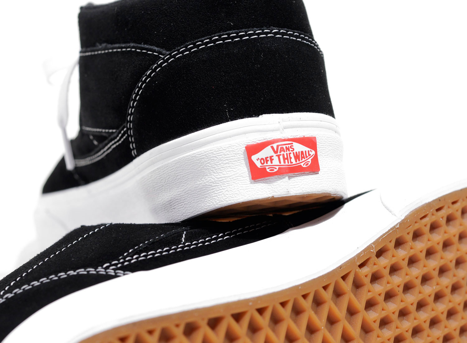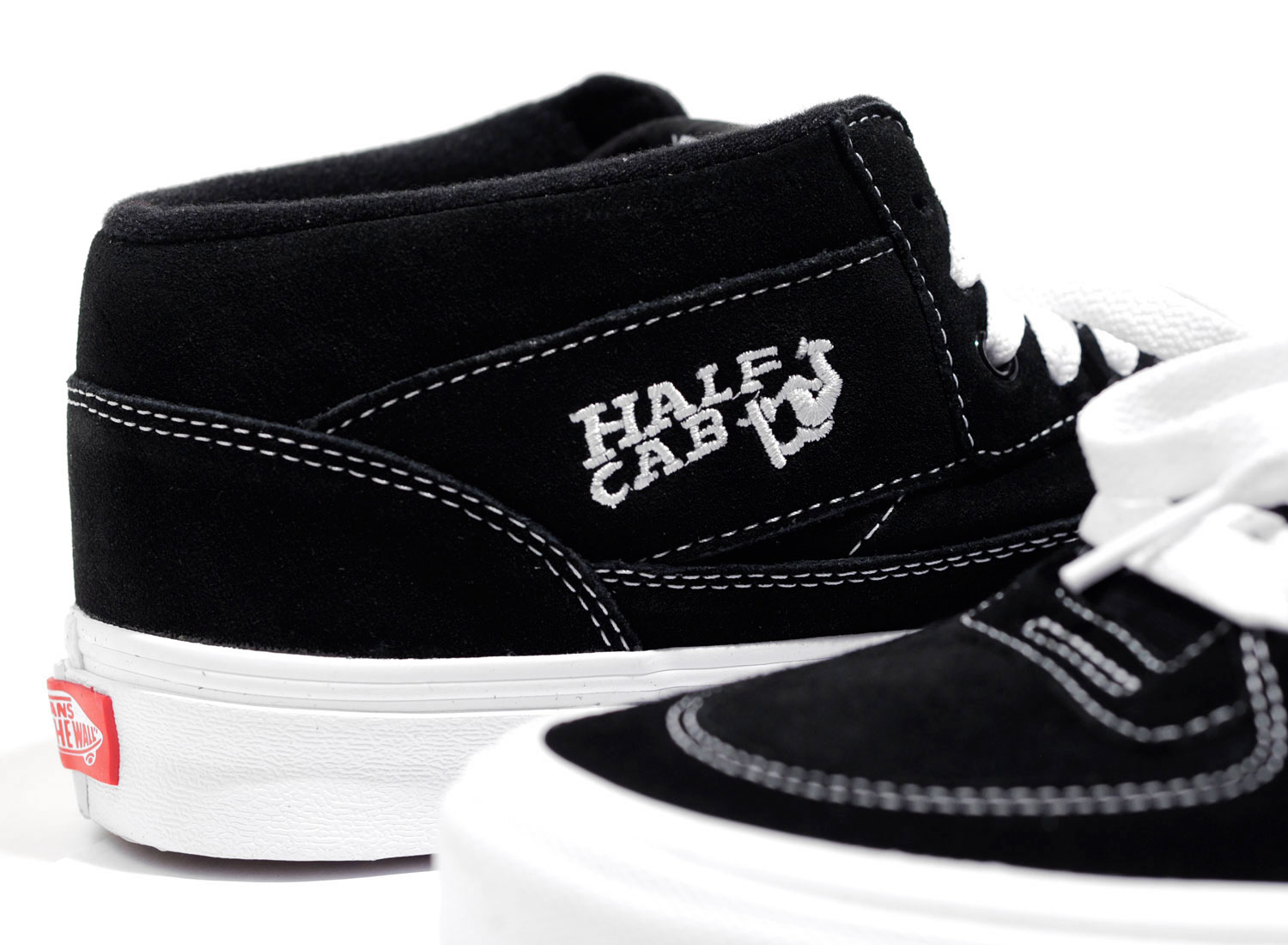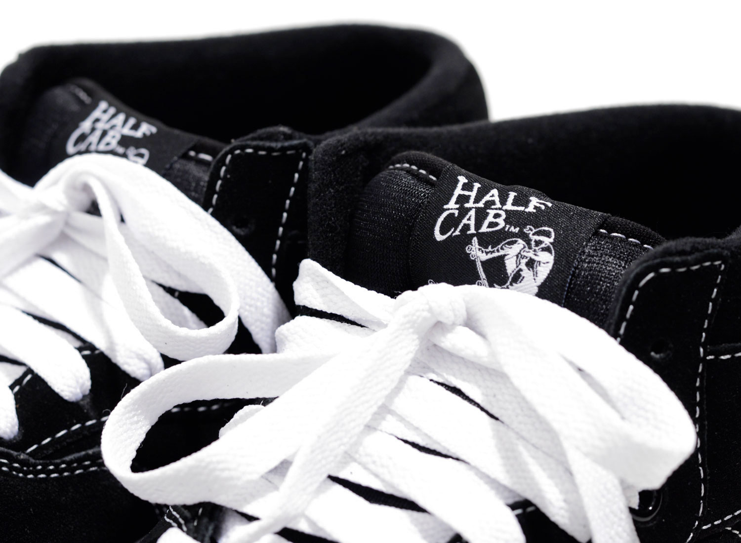 VANS Half Cab Black. Réédition du modèle emblématique de Steve Caballero. Empeigne en cuir suédé. Un classique intemporel.