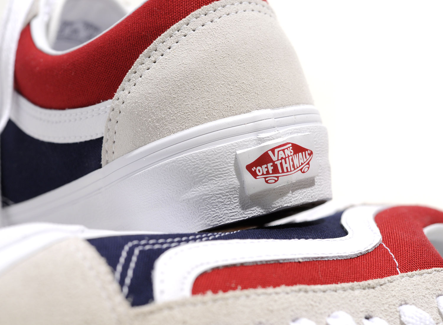 VANS Old Skool Reissue Retro Block White / Red / Dress Blues. Très belle OLD SKOOL faisant partie du pack Retro Block. Mélange de canevas et suede. Look vintage.
