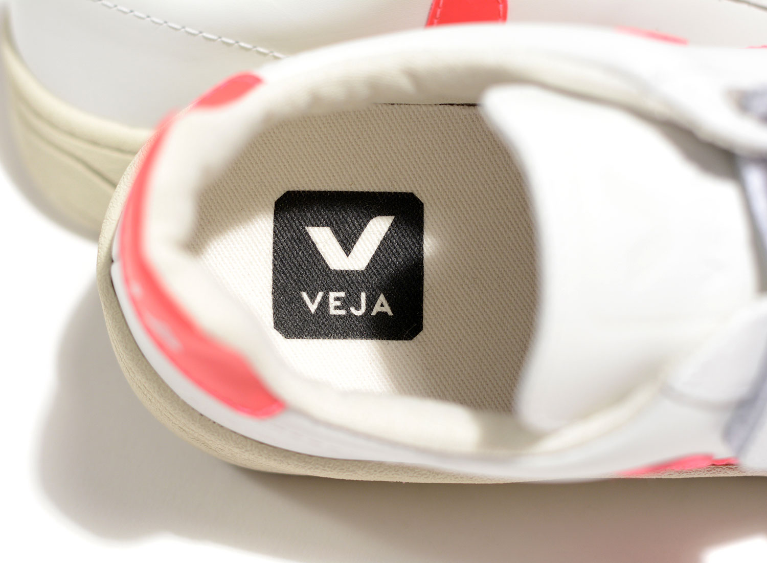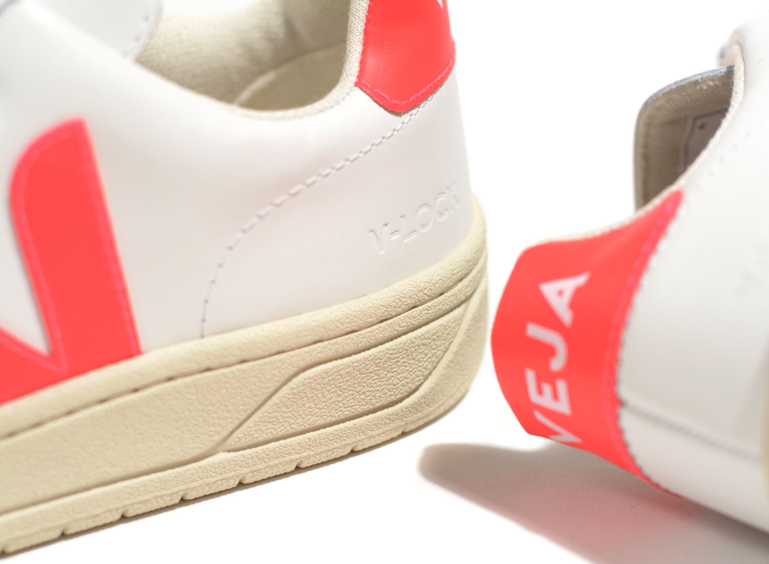 VEJA V-Lock Leather Extra White / Rose / Fluo. Tige en cuir Empiècements en cuir. Logo V en cuir. Doublure intérieure en coton biologique. Semelle intérieure en caoutchouc sauvage et autres matières synthétiques. Semelle en caoutchouc sauvage d'Amazonie. Fabriqué au Brésil, dans la région de Porto Alegre.