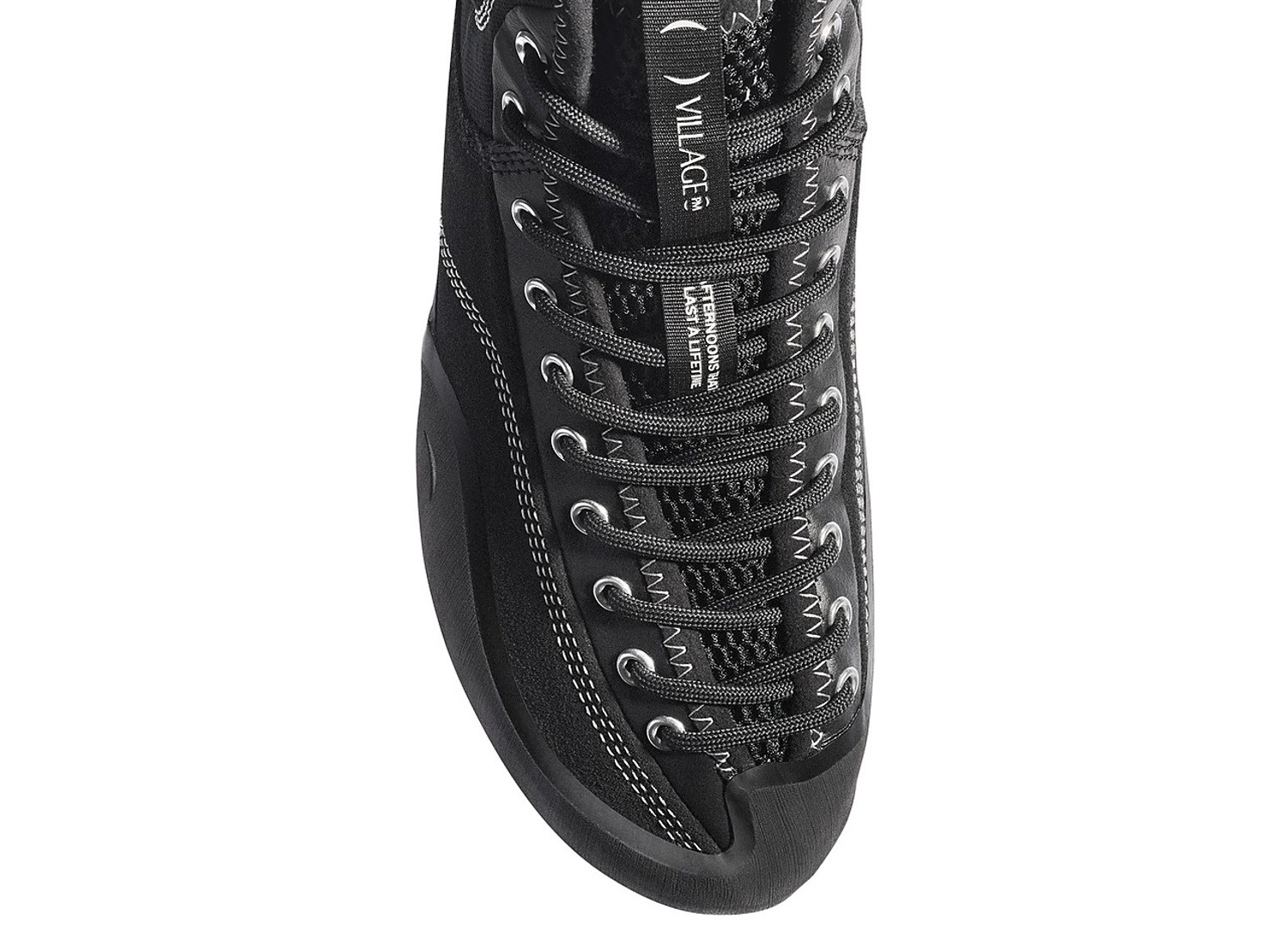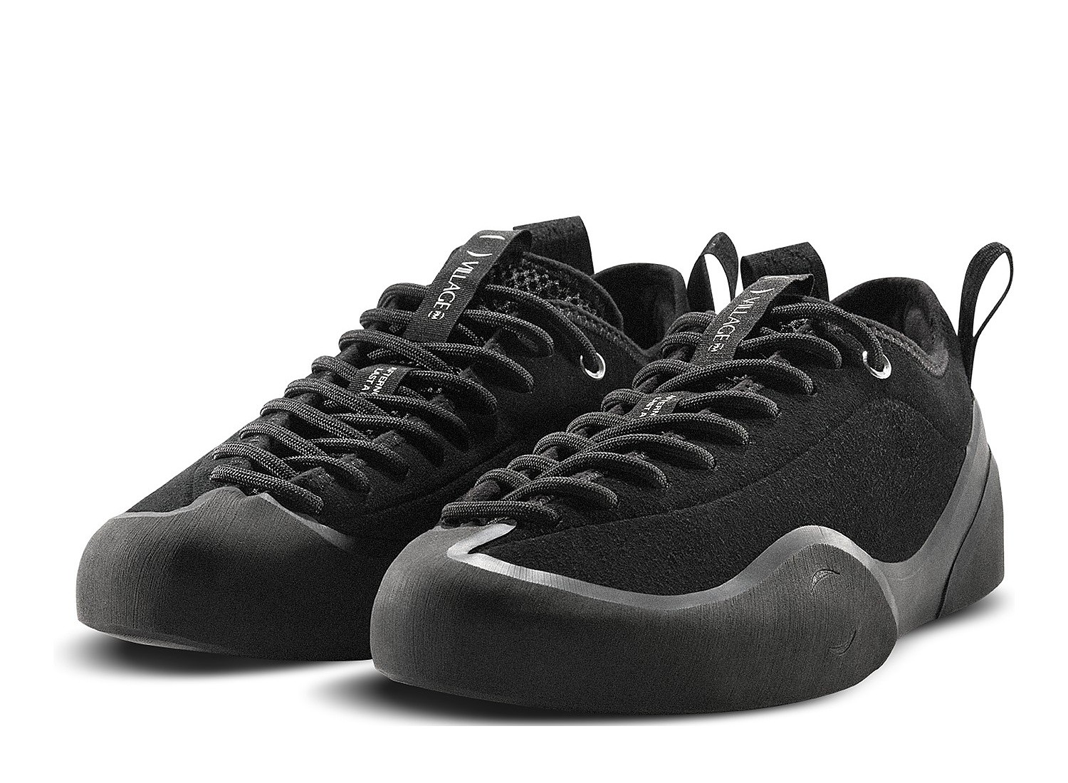 Chaussure de skate 1PM par Village PM. Chaussure de skate progressive pour ajustement précis, confort et soutien. Empeigne en daim. Facile à faire, caoutchouc d'escalade souple et adhérent enroulé autour des orteils et du talon. Technologie Rubber Glove : caoutchouc souple enroulé manuellement autour du pied pour ajustement précis et durabilité. Coupe asymétrique épousant la forme naturelle du pied. Laçage asymétrique sur tout le pied. Semelle intermédiaire EVA amovible : épaisse au
