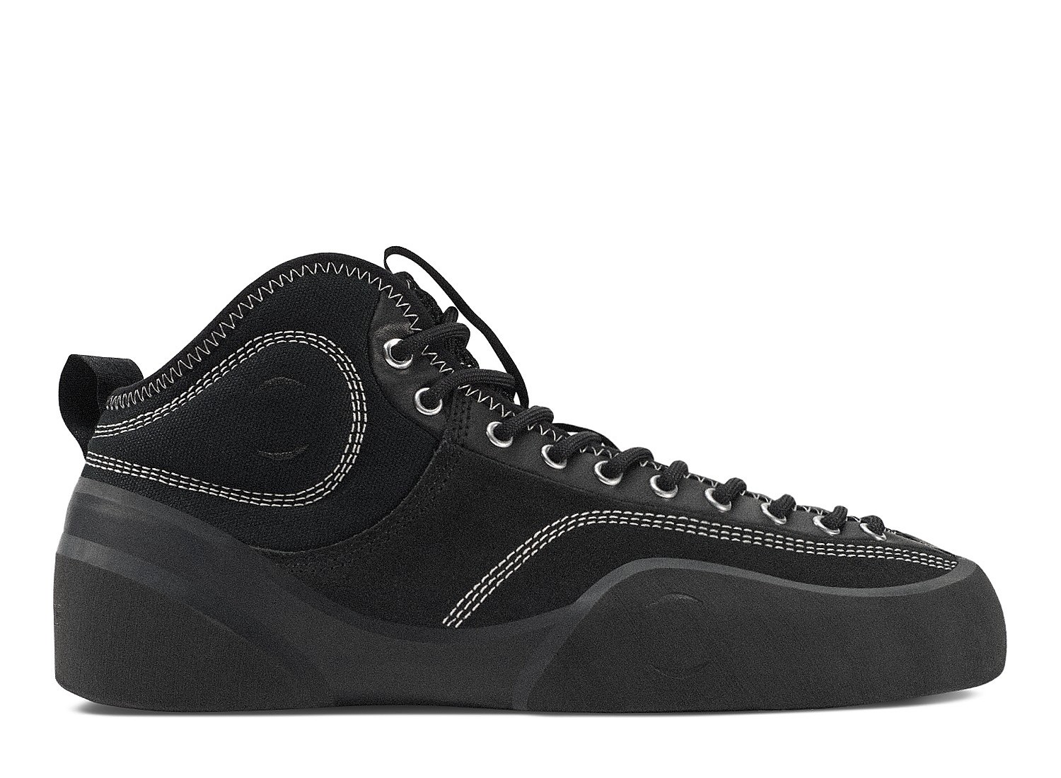 Chaussure de skate 1PM Mid par Village PM. Chaussure de skate montante pour ajustement précis, confort et soutien renforcé. Empeigne en canevas robuste. Facile à faire, caoutchouc d'escalade souple et adhérent enroulé autour des orteils et du talon. Technologie Rubber Glove : caoutchouc souple enroulé manuellement autour du pied pour ajustement précis et durabilité. Coupe asymétrique épousant la forme naturelle du pied. Laçage asymétrique sur tout le pied. Tige mid offrant maintien e