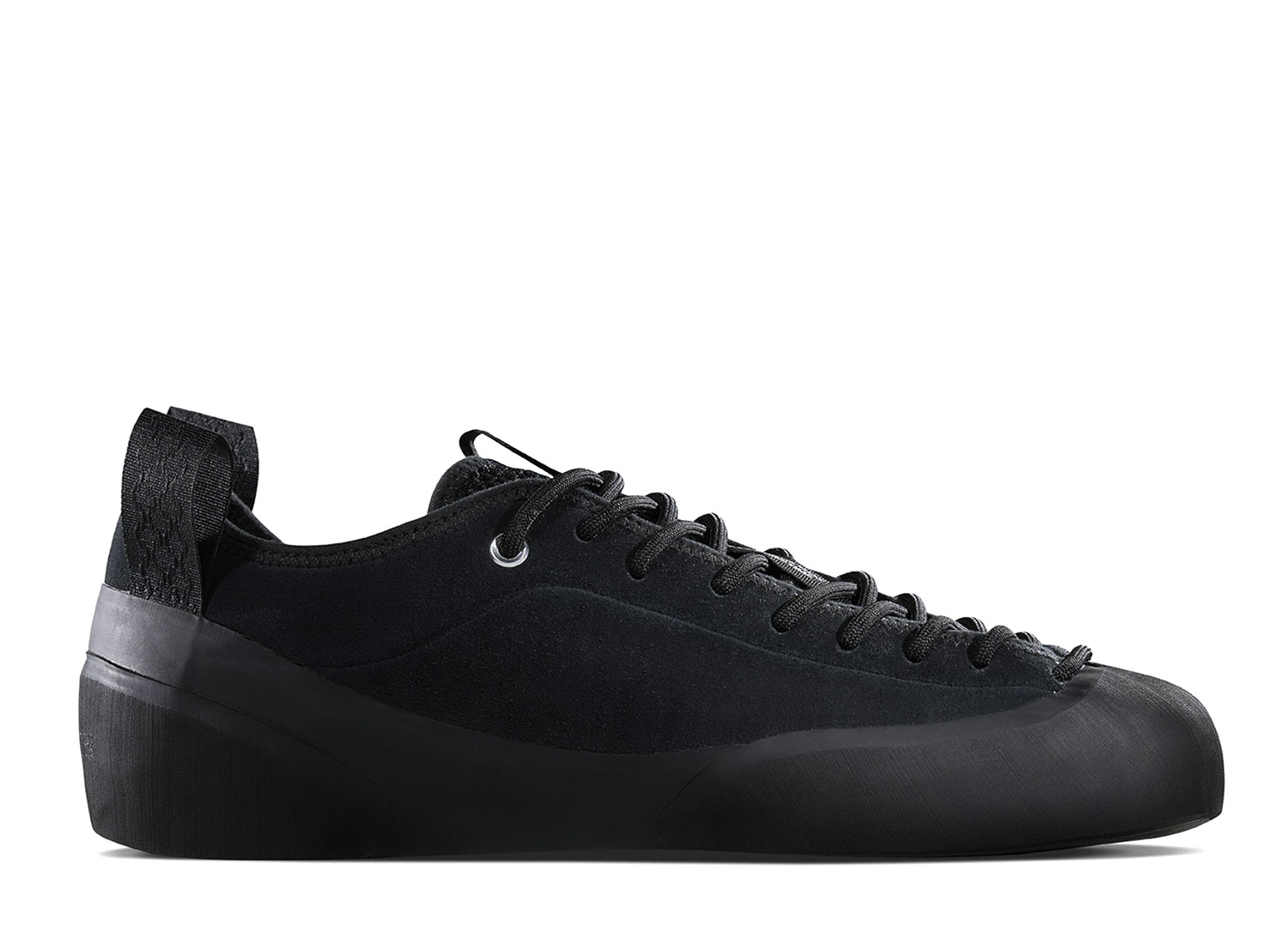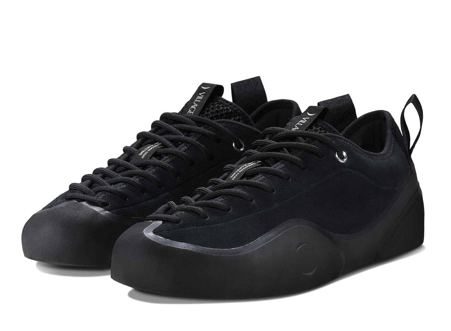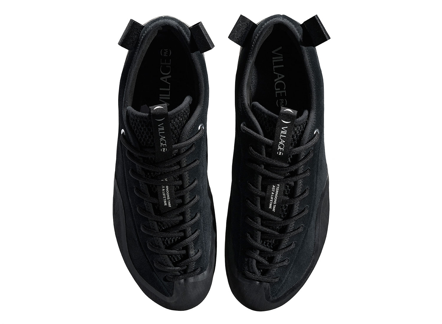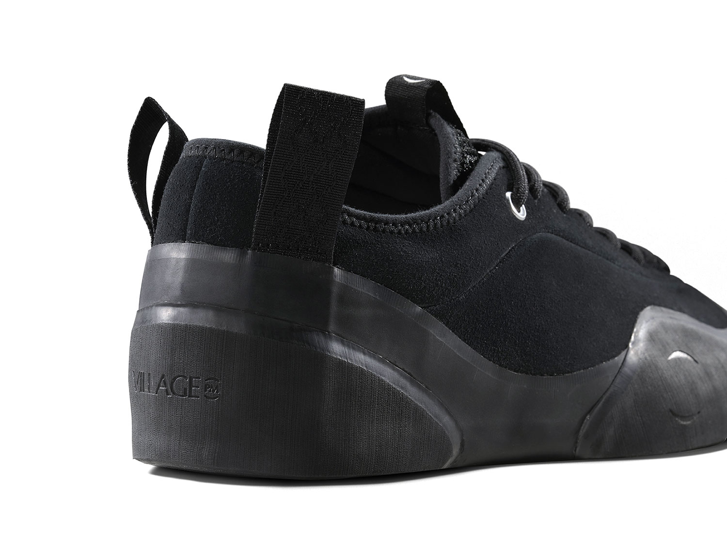 VILLAGE PM 1 PM Black. Village PM réinterprète la chaussure de skate sous une approche unique et innovante aux inspirations venues de l'outdoor. La 1PM s'inspire des chaussures d'escalade dans son design asymétrique et sa construction robuste. La 1PM embarque une semelle vulcanisée renforcée remontant sur le dessus de l'empeigne pour une protection optimale. La languette est construite dans un mesh respirant. L'empeigne est en cuir suedé premium. Des bords-cotes en néoprène sont cousus pour la résistance et le confort. Deux languette s'inspirant de l'escalade sont présentent à l'arrière pour facilité l'enfilage.