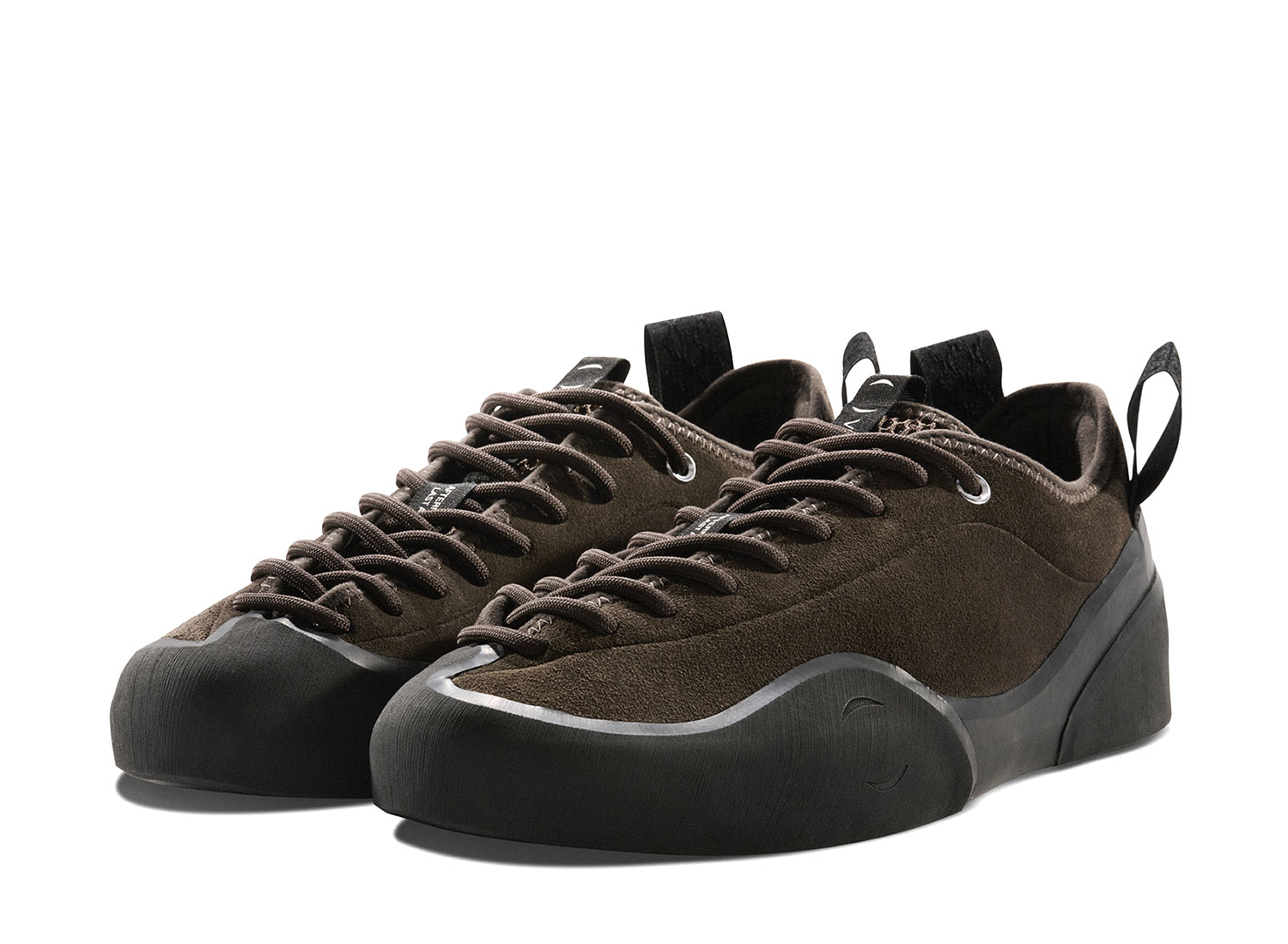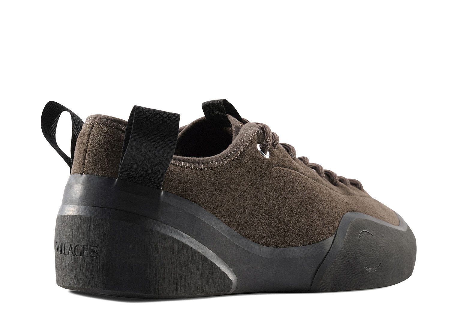 VILLAGE PM 1 PM Chocolate. Village PM réinterprète la chaussure de skate sous une approche unique et innovante aux inspirations venues de l'outdoor. La 1PM s'inspire des chaussures d'escalade dans son design asymétrique et sa construction robuste. La 1PM embarque une semelle vulcanisée renforcée remontant sur le dessus de l'empeigne pour une protection optimale. La languette est construite dans un mesh respirant. L'empeigne est en cuir suedé premium. Des bords-cotes en néoprène sont cousus pour la résistance et le confort. Deux languette s'inspirant de l'escalade sont présentent à l'arrière pour facilité l'enfilage.