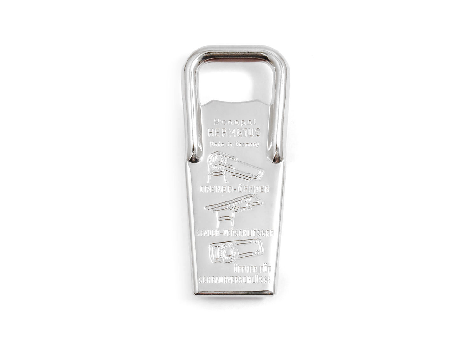 Décapsuleur / Recapsuleur Monopol Hermetus par WESTMARK. Acier chromé. Modèle historique fabriqué en Allemagne. Fini les bouteille de bières ou de Soda sans bulles grâce au système facile et pratique de re-capsulage. Dimensions: 8,5 x 3,1 cm.