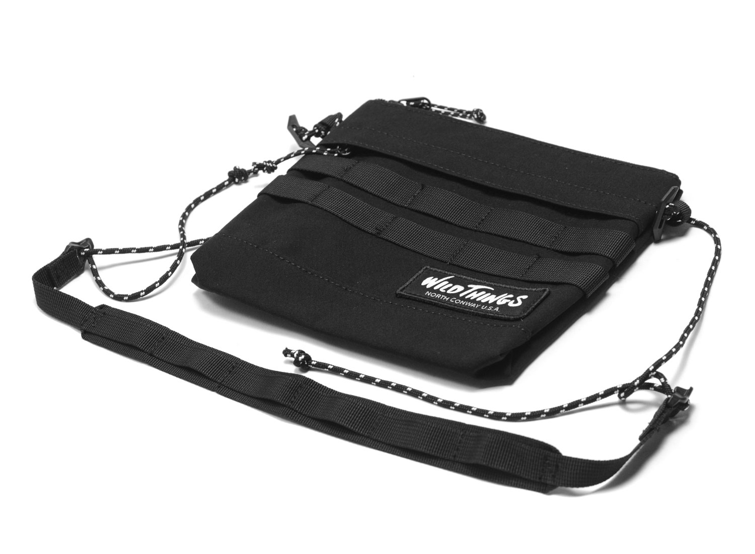 WILD THINGS Military Sacoche Black. Petite sacoche confectionnée dans un tissu déperlant. Poches zippées. Sangle cordon réglable. Format : 20 x 20cm